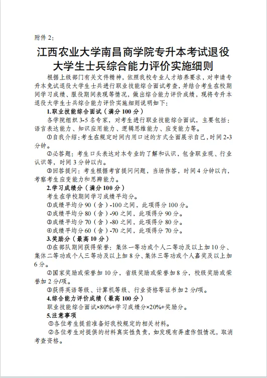 附件2:江西农业大学南昌商学院专升本考试退役大学生士兵综合能力评价实施细则.docx.docx