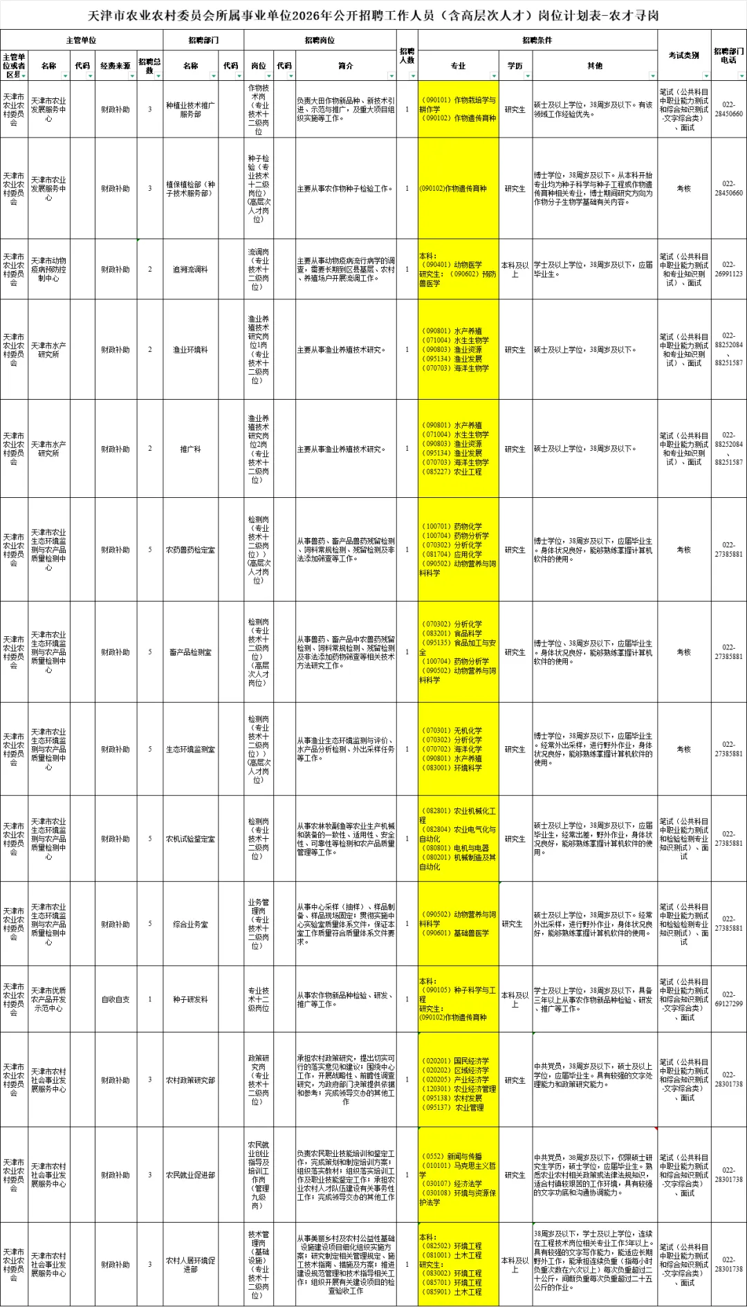 (三)具体招聘的岗位、人数和条件详见《天津市农业农村委员会所属事业单位2026年公开招聘工作人员(含高层次人才)岗位计划表》。