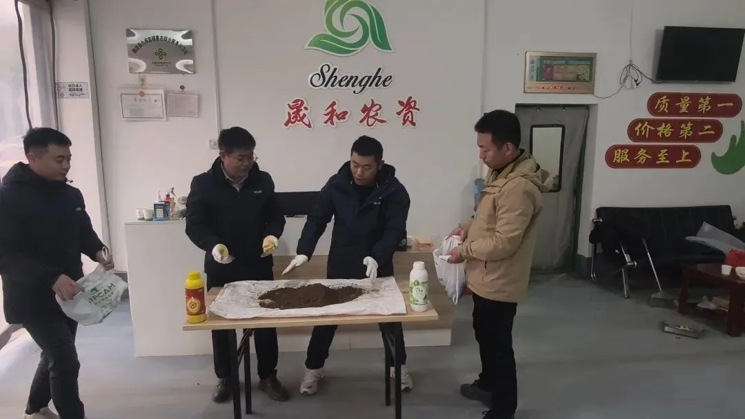 在晟和农资的服务点内,工作人员对采集的土壤样本进行了细致处理与检测。结合检测数据,中化化肥的专家团队为闫锁奇将量身定制专属施肥配方,明确不同肥料的施用种类、数量和时机,避免盲目施肥造成的资源浪费与环境压力。