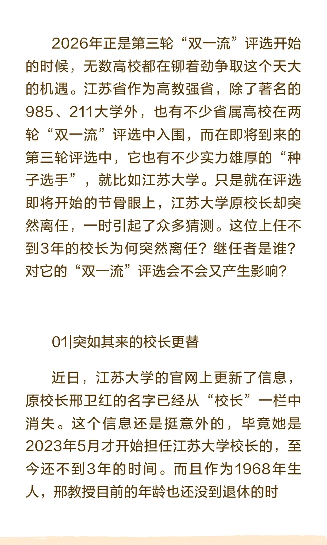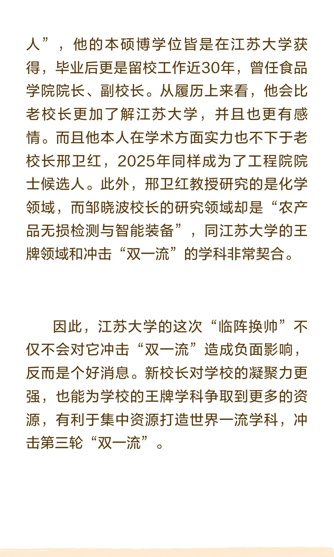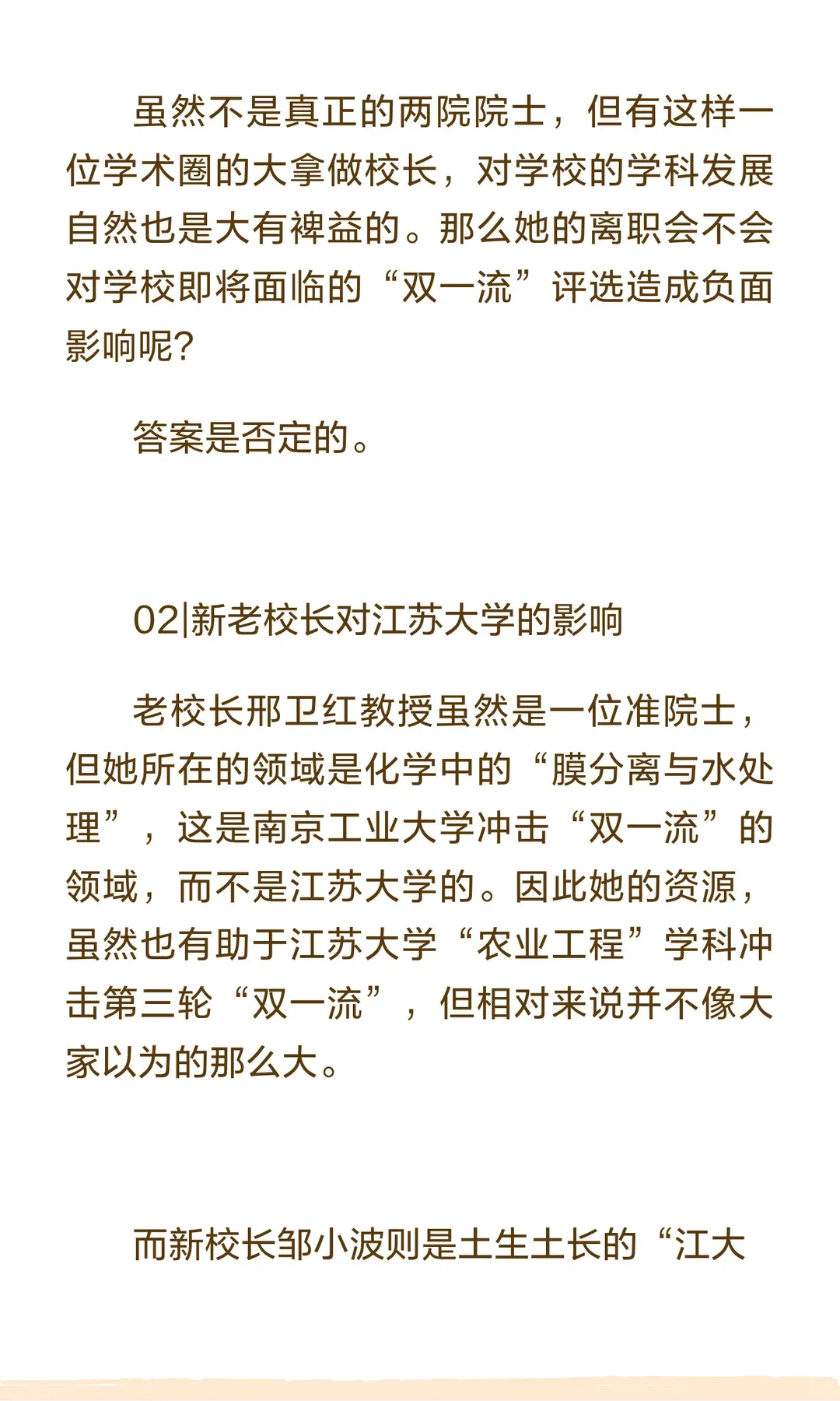 “南京教育资源太丰富了,反而应该给其他地区掉机会”“江大很不错啊!双一流应该不会因为换校长而受影响的吧!况且换上来的邹校长也是本校直升的,对学校情况也是非常了解的。”;