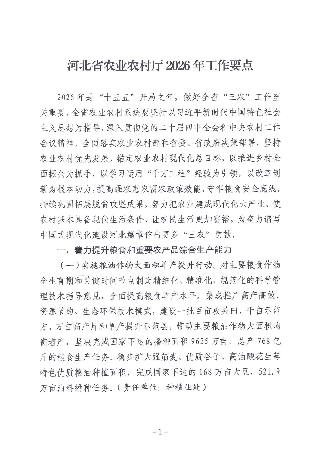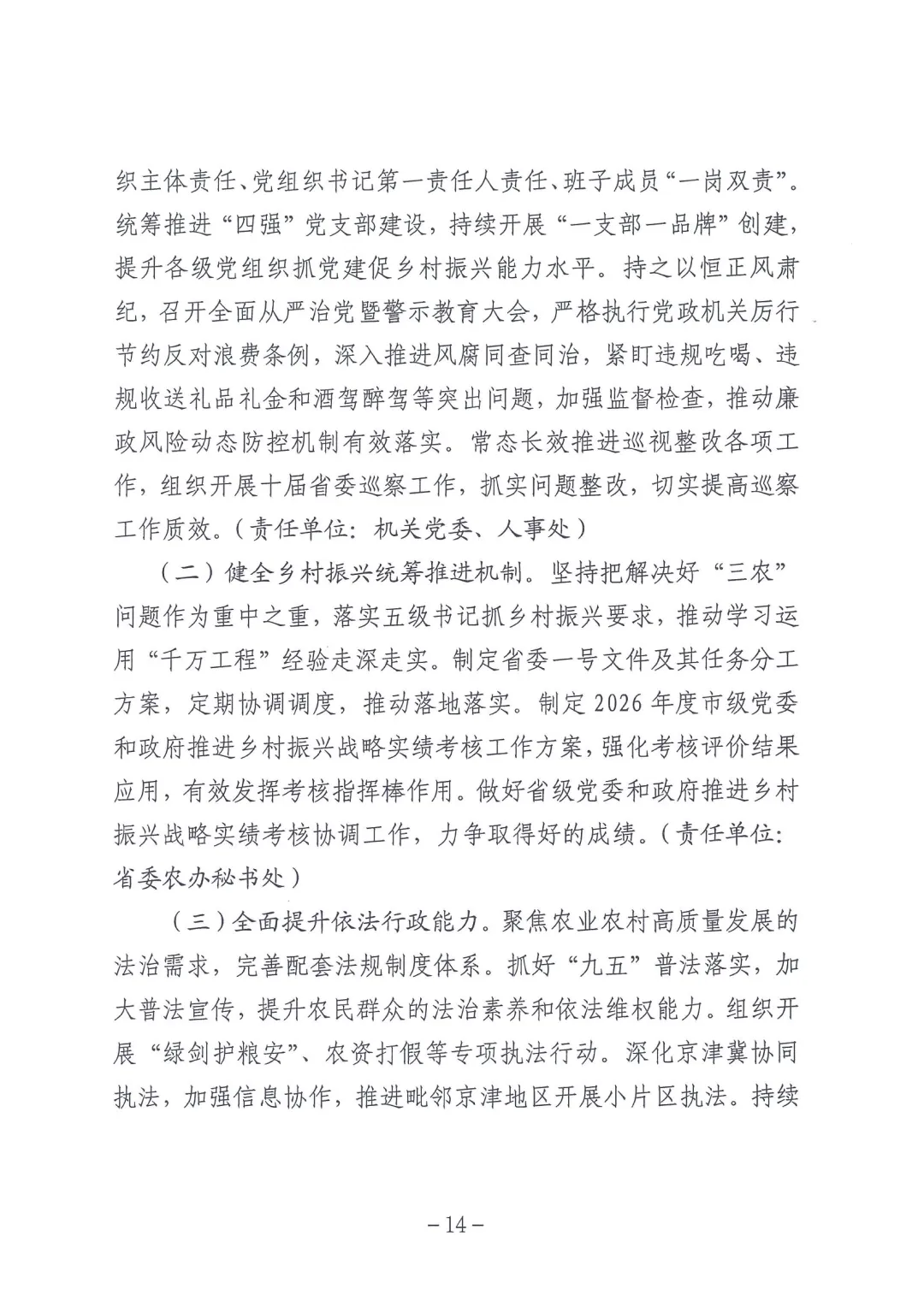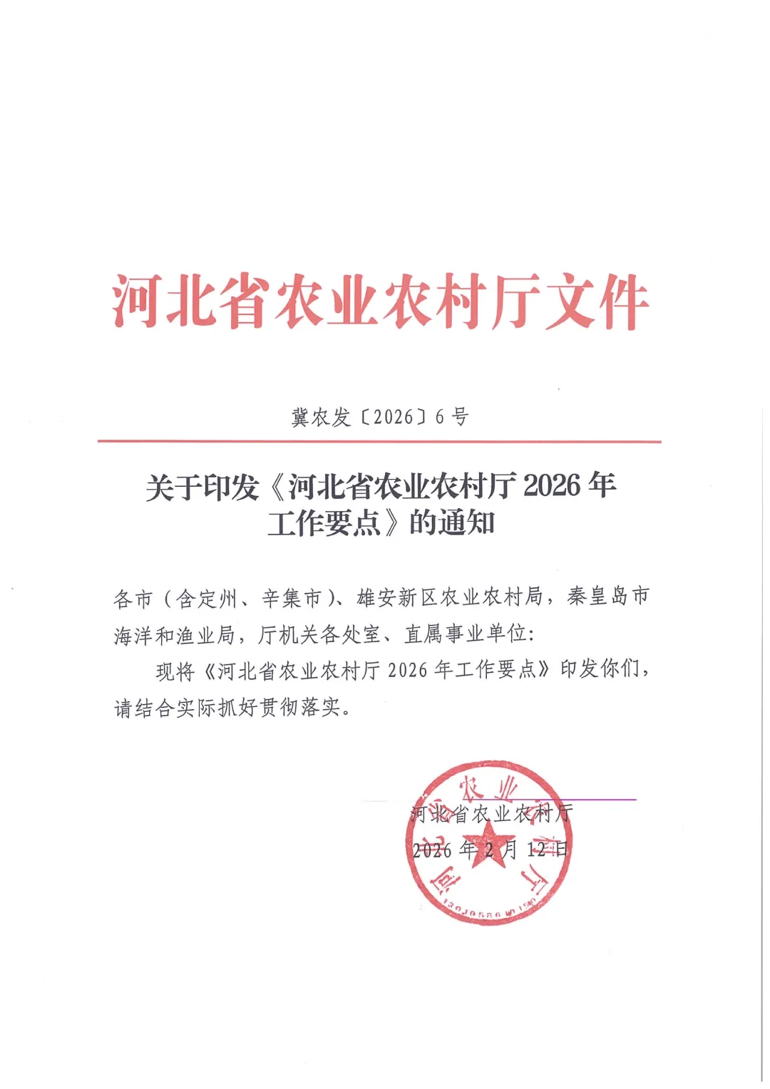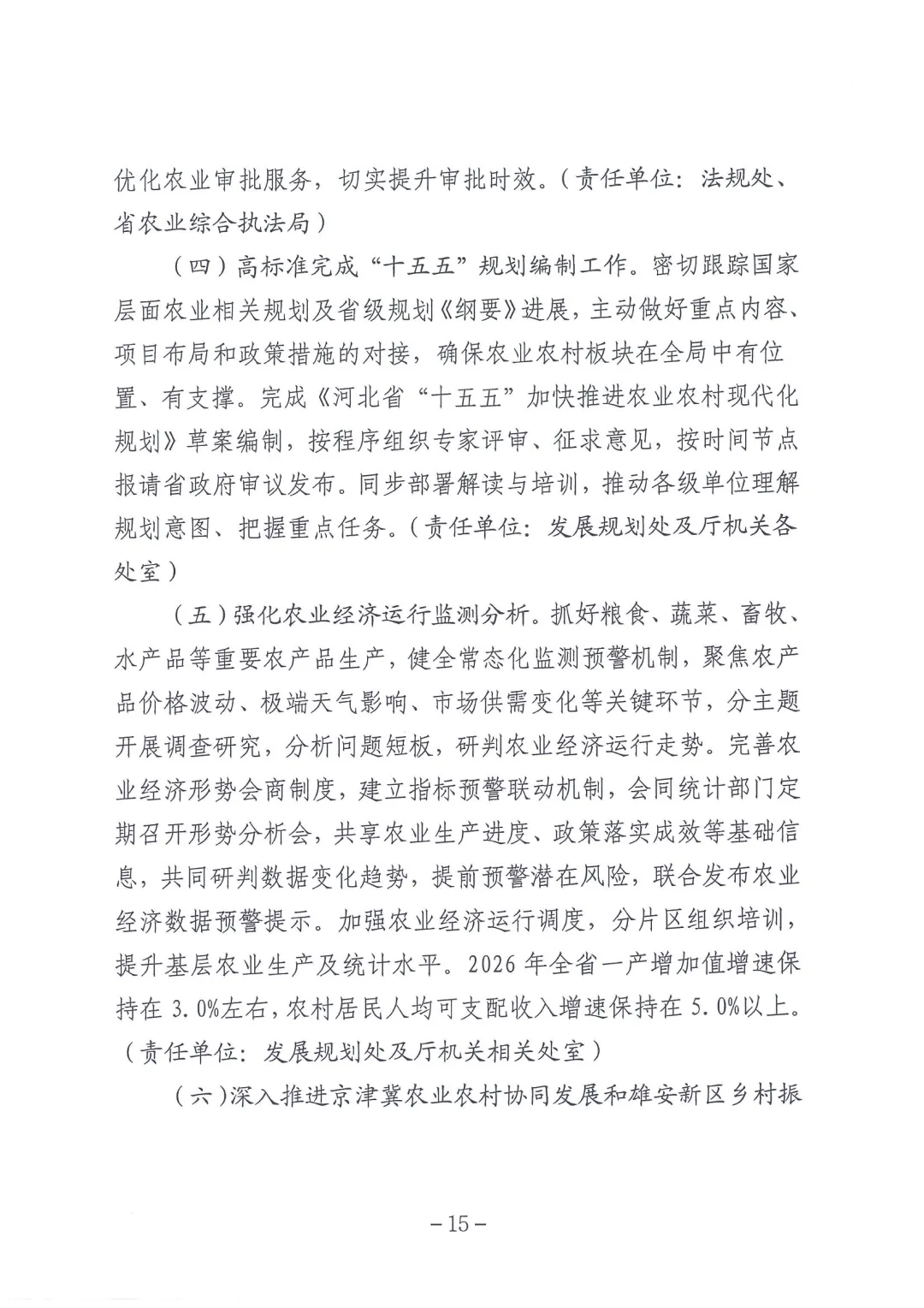 >农村-河北省-关于印发《河北省农业农村厅2026年工作要点》的通知