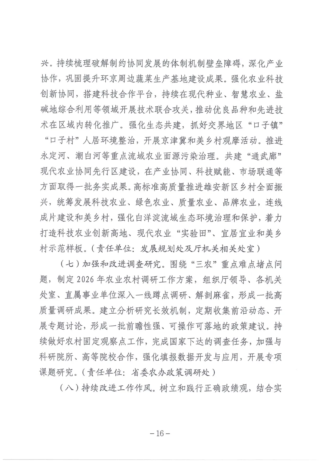 农村-河北省-关于印发《河北省农业农村厅2026年工作要点》的通知