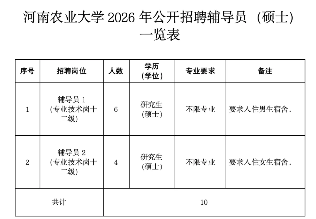 (一)报名报名采用网上报名方式,请登录河南省属大中专学校教师公开招聘网上报名系统(网址http://zhaopin.jyt.henan.gov.cn/default.aspx?sid,进入河南农业大学教师公开招聘网上报名系统,通过“硕士及硕士以下学历报名入口”进行报名,报名时间为2026年3月1日8时至2026年3月15日18时。每人限报我校1个岗位,请应聘者慎重选报,报名成功后务必牢记登陆密码,应聘者可凭此密码登陆招聘系统查询个人相关信息。重要提示:招聘工作中具体安排,请应聘人员及时关注河南农业大学人事处网站招聘信息栏(网址http://rs.henau.edu.cn/),按学校要求参加资格审查、考试等各环节招聘工作。如因本人不及时查阅相关招聘信息造成后果,责任自负。