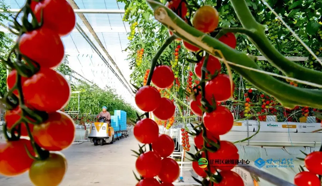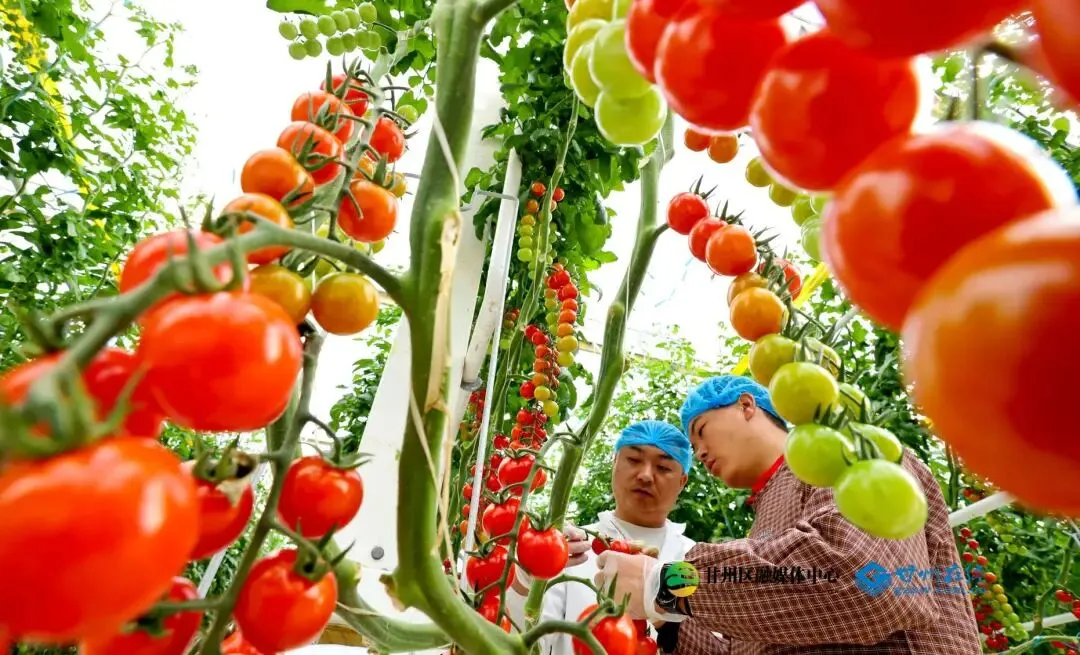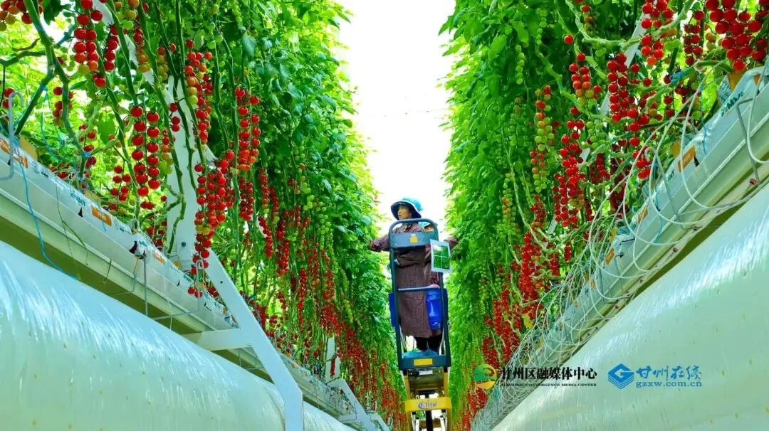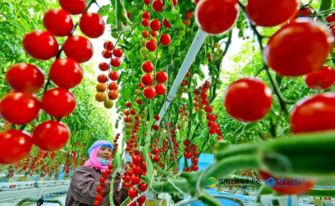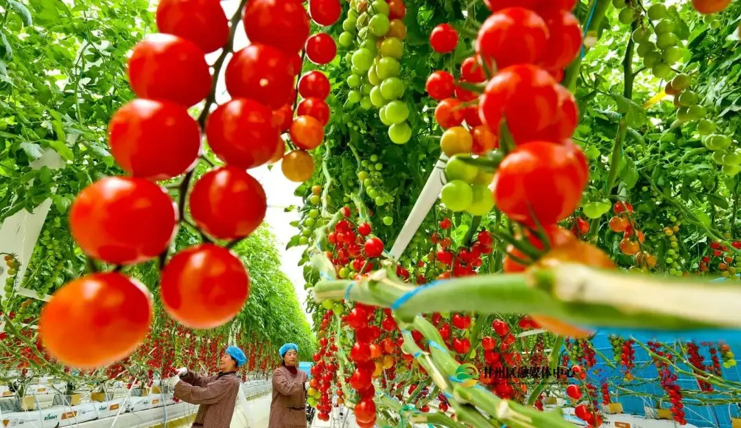 据了解,甘肃省张掖市甘州区积极探索土地集约化、服务集成化、农业智慧化、人才专业化的有效路径,采用无土栽培技术、智能温室控制系统、人工智能管理、精准水肥一体化、潮汐式移动苗床,以及先进的分选包装设备和保鲜冷藏技术等先进农业技术,建成10多万平方米现代农业智能温室工业化蔬菜栽培车间,每年“串番茄”产量达2800吨,还可提供固定就业岗位400个,辐射带动周边群众就近务工,让众多村民实现家门口就业。