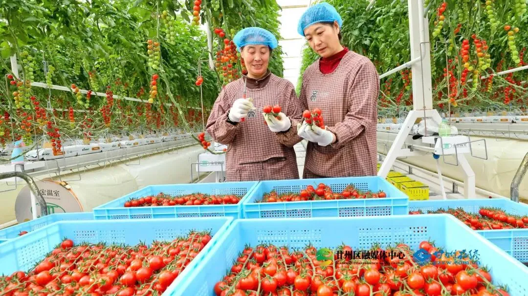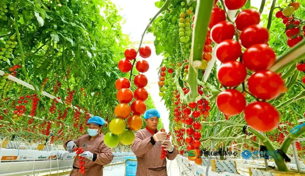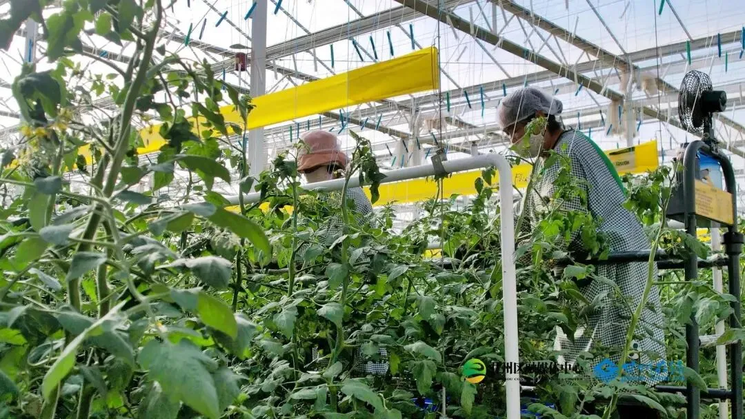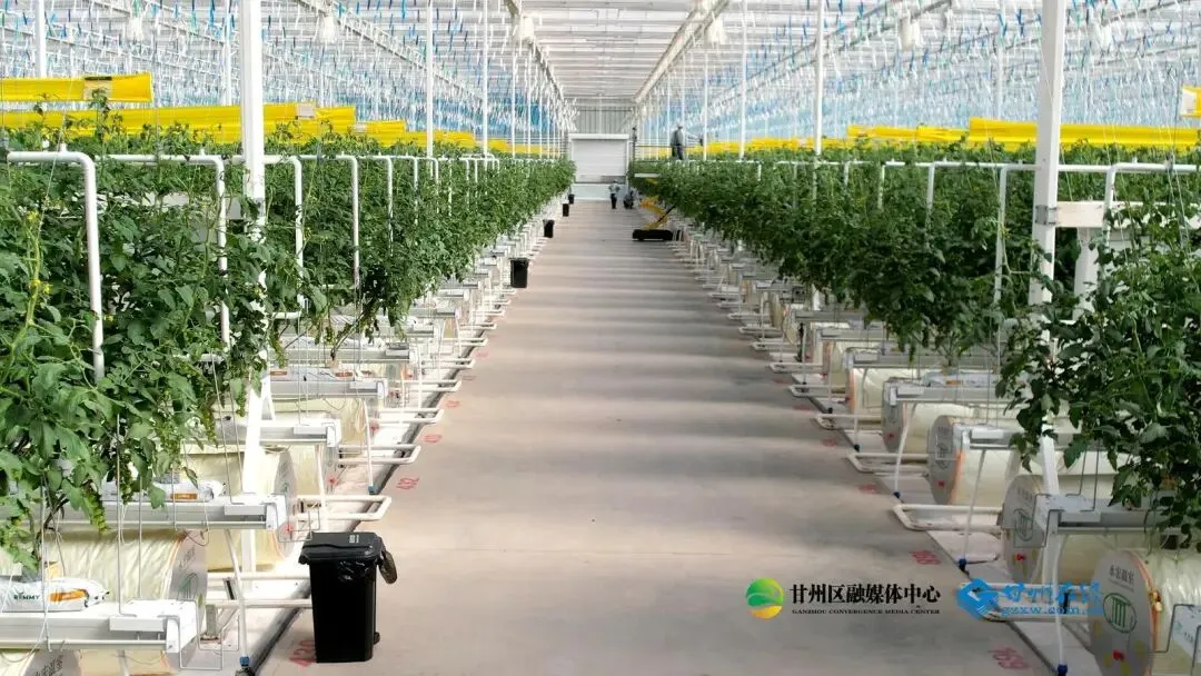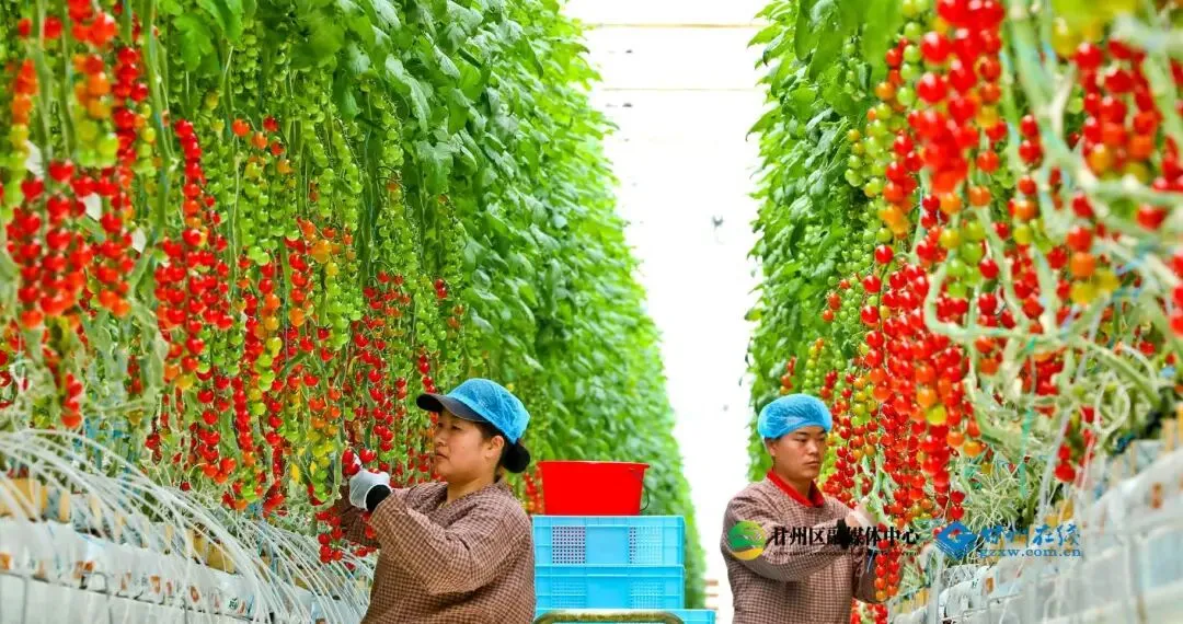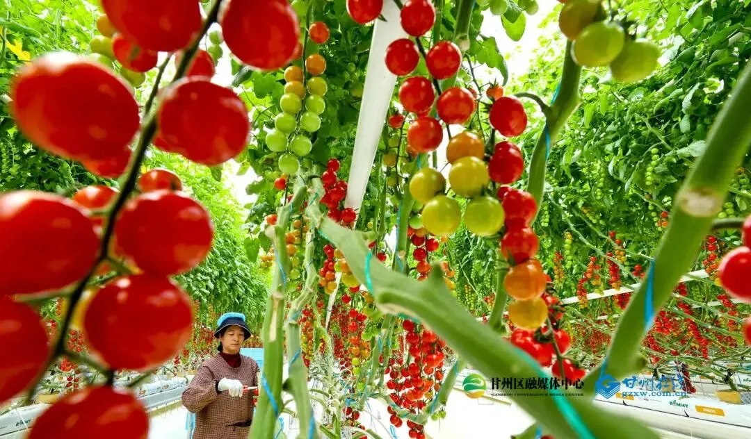 据了解,甘肃省张掖市甘州区积极探索土地集约化、服务集成化、农业智慧化、人才专业化的有效路径,采用无土栽培技术、智能温室控制系统、人工智能管理、精准水肥一体化、潮汐式移动苗床,以及先进的分选包装设备和保鲜冷藏技术等先进农业技术,建成10多万平方米现代农业智能温室工业化蔬菜栽培车间,每年“串番茄”产量达2800吨,还可提供固定就业岗位400个,辐射带动周边群众就近务工,让众多村民实现家门口就业。
