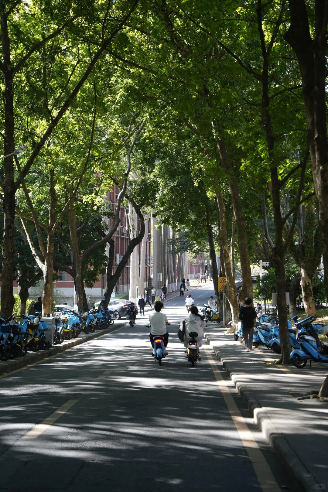 从西南门进去,你就正式踏入这片“治愈森林”了。校园非常大,千万别指望用双脚能轻松征服,那真的会走到脚软。我的建议是,进门后,可以先慢慢走一段,感受一下氛围,然后找一辆校内的共享电动车。 骑着车,让风穿过发梢,自由地在林荫大道上穿行,看到喜欢的地方就随时停下来——这才是打开华农校园最惬意的方式。如果你时间有限,或者不想做太多规划,就跟着下面这条松弛的路线走,它能让你在半天内触碰到华农最精华的脉动。