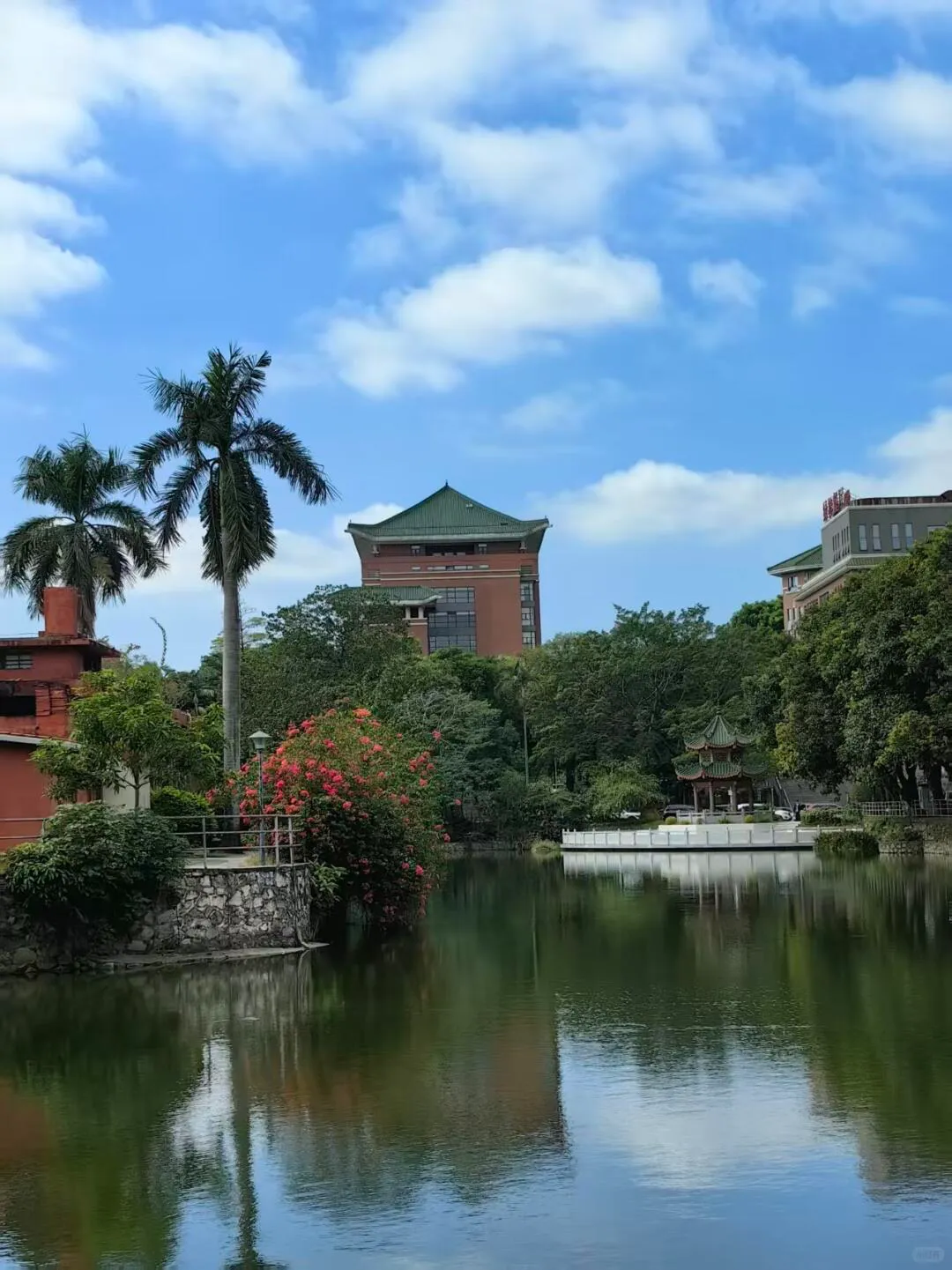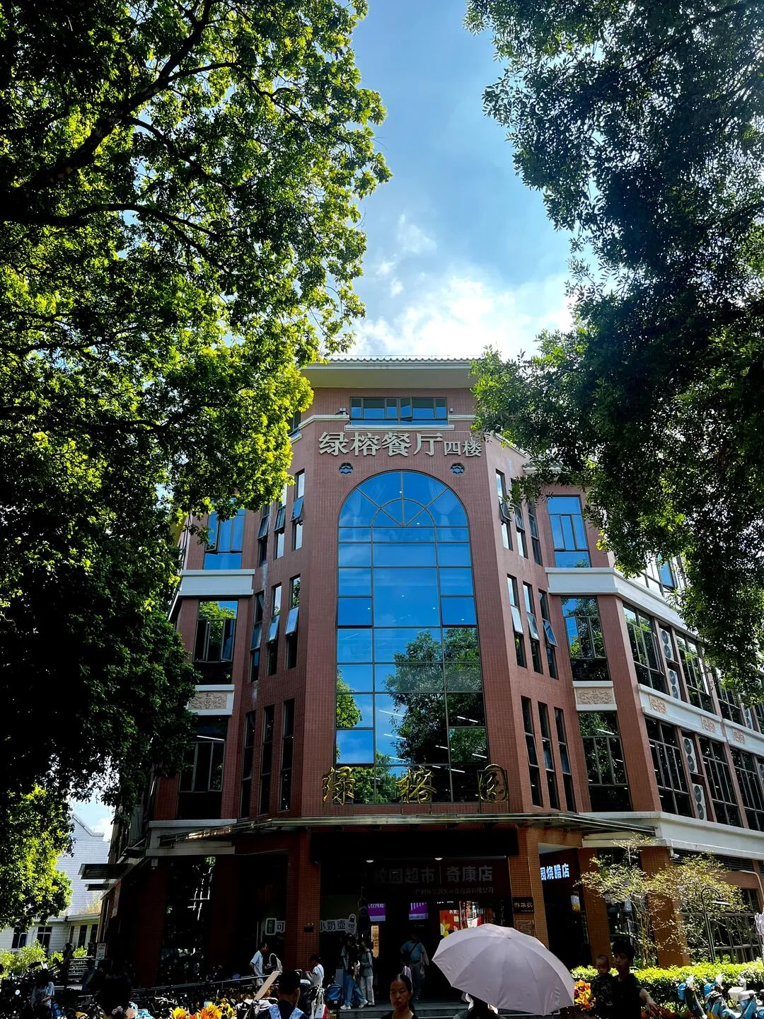 我的起点自然是西南门。进门后,可以先沿着主路漫无目的地走走,感受一下两旁高耸树木带来的宁静。很快你就会走到绿榕园,这是一片生活区的中心。别急着看风景,绿榕园餐厅就在这儿。没错,第一站,我建议你去食堂。这可能是你最接近华农学生日常的时刻。食堂里菜品窗口很多,自选菜、烧腊、面食应有尽有。校外人员可以用手机支付,系统会自动加收一点费用,但这价格比起外面的餐馆,依然是十足的“学生价”。坐在明亮的食堂里,周围是讨论课题、聊聊生活的年轻人,吃着热气腾腾的饭菜,那种久违的、简单的满足感特别强烈。吃饱喝足,可以骑车去教三大草坪。这里是华农的“精神地标”。一片无比开阔的绿色,像一块巨大的绒毯铺展开,边缘是红砖墙的古典风格教学楼。阳光好的时候,这里坐满了人:有看书的学生,有嬉笑的朋友,有带孩子来野餐的家庭,还有晒太阳发呆的任何人。你可以毫无负担地找个地方坐下,什么都不做,就看云卷云舒,看青春的身影跑过,那种被阳光和生命力包围的感觉,能迅速清空你积攒了一周的疲惫。从草坪出来,可以顺路去看看红满堂,这座有历史感的建筑很独特。然后,把你的电动车停在路边,去华农酸奶馆坐坐。来了华农,怎么能不喝一瓶标志性的华农酸奶呢?醇厚的口感,是无数广州学子的共同记忆。买上一瓶,坐在店里慢慢喝,这几乎是一种必需的仪式。如果时间充裕,华农博物馆和华农文创馆也值得一转。博物馆需要留意开放时间,而文创馆里那些带着“华农”logo的小物件,则是把记忆带回家的好选择。在华农,比起“看”了什么,更重要的是“感受”了什么。有几个瞬间,让我觉得不虚此行: