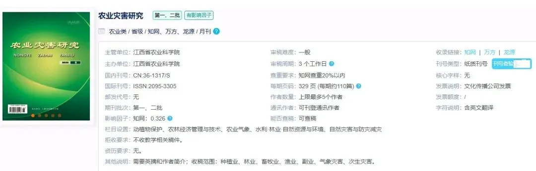 《农业灾害研究》第一二批学术期刊 带因子 现收 2026年8月版面 预计见刊26.11月见刊 可加急 收稿方向:种植业,林业,渔业,副业,农业气象,园林,自然灾害防灾减灾等方面的文章 植物保护农药,乡村振兴,农田水利,农业气象与环境灾害,农业次生灾害,农业教学,动物保护兽药,土地资源与生态,农业基础科学,农业经济管理与技术等