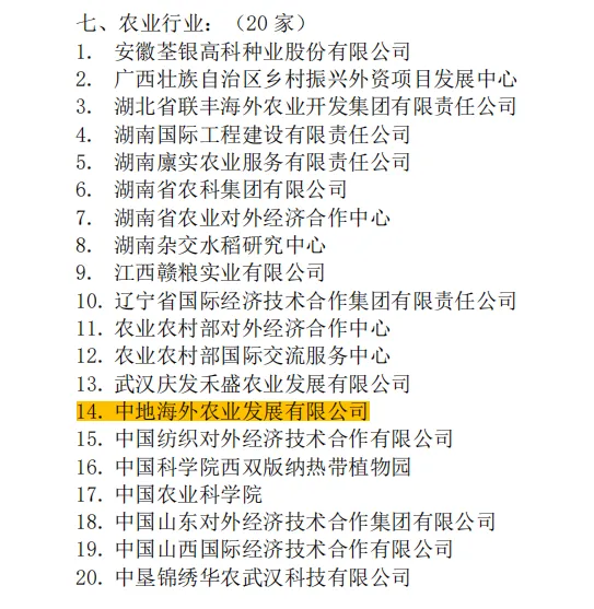 2025年12月底,商务部援外项目实施企业资格招标(第二类:援外技术援助项目实施单位)结果公示。中地海外农业发展有限公司凭借深厚的专业技术实力,以及良好的行业口碑,获得援外项目实施企业资格。