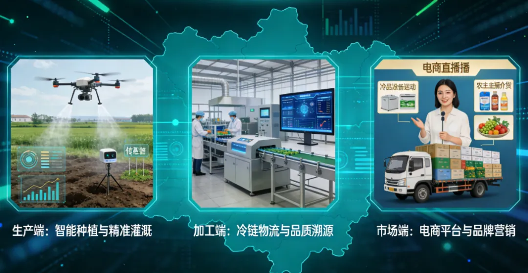 科技的价值不仅体现在生产端,更在于它对整个农业产业链的整合与重塑能力。通过数字化手段,可以有效打通从田间到餐桌的各个环节。