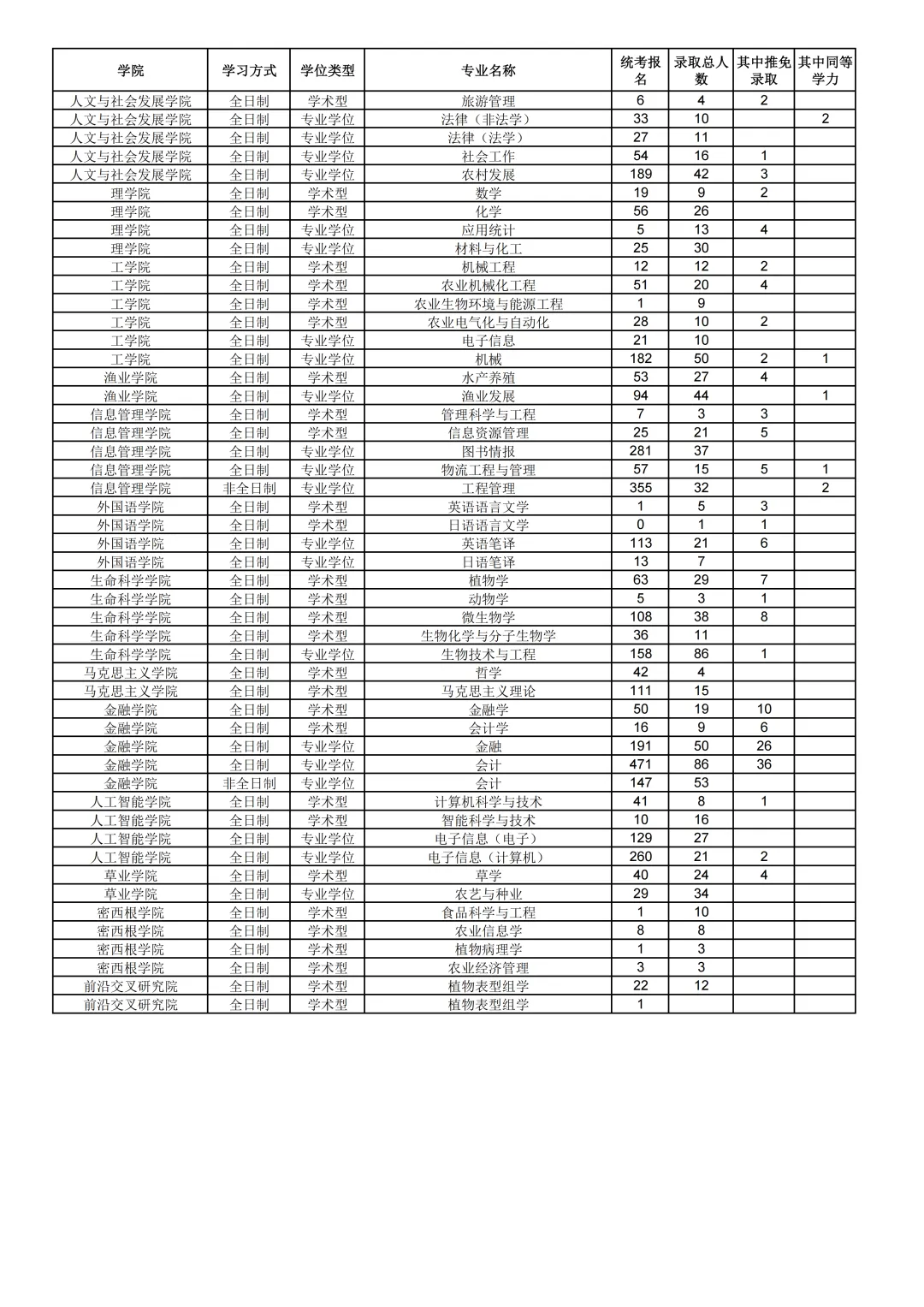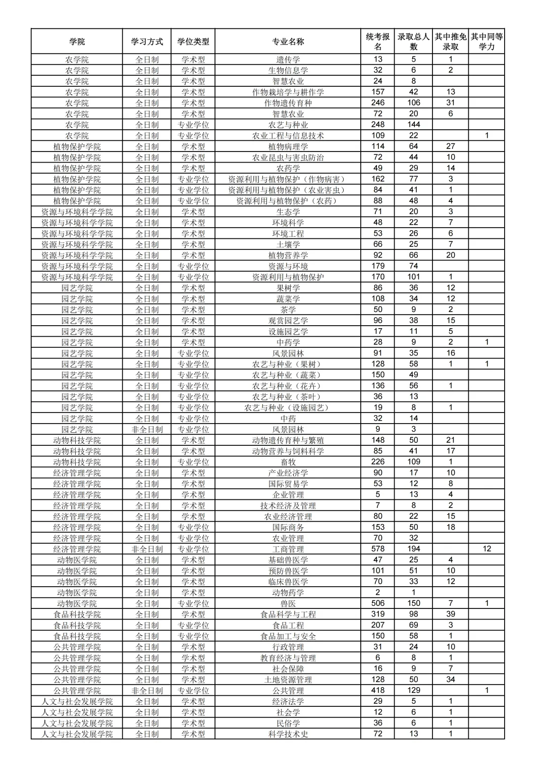 但是考研永远有个前提,叫分数线,一般来说连最基础的国家线都会刷走很大一部分人,所以你第一个竞争对手永远不是人数,而是这条线,一旦过线其实真正要面对的基本不会超过2:1,很多都是在1.2:1到1.5:1之间。但不管怎样,该数据还是能在一定程度上体现院校专业的热门程度的,今天为大家整理的就是2025级南京农业大学硕士专业报考录取情况: