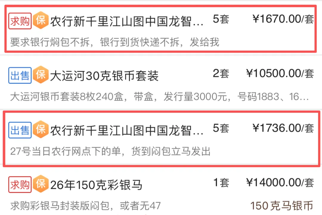 这枚千里江山图中国龙银卡未发先火,在预约前一天就有人开始收购期货,行情已经大涨。
