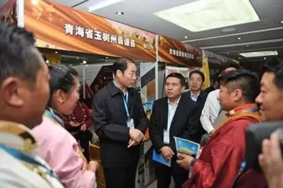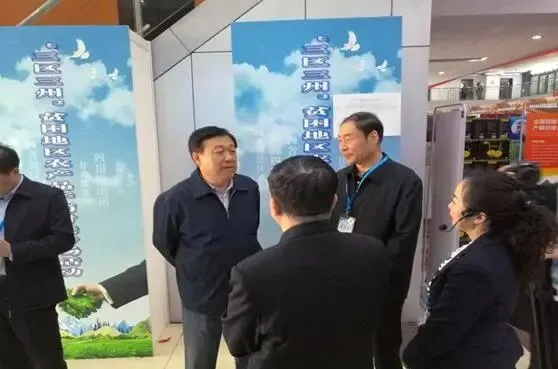 王玉虎厅长和马清德副厅长详细了解青海省各贫困县企业参展情况。