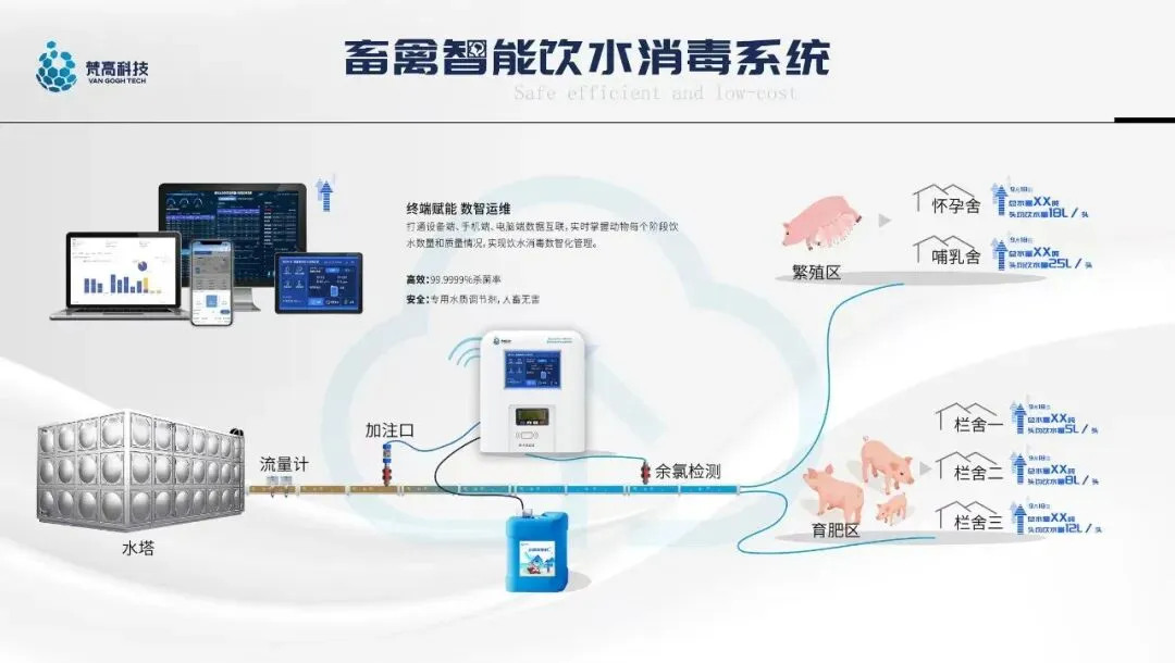 1、设备可以实时监测水流量数据和消毒后的余氯数据,保障了添加量的精准度和水消毒的有效性及安全性;