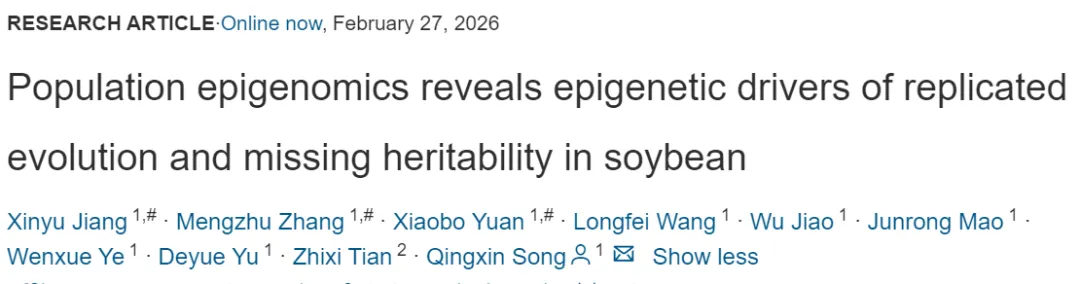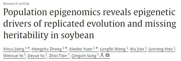 大豆(Glycine max)是全球重要的植物蛋白和植物油来源,在人类膳食结构与畜牧业生产中占据核心地位,具有重要的经济与战略价值。同时,大豆也是研究作物基因组演化与选择压力的理想模型。普遍认为,大豆约在 6000-9000 年前由其野生祖先Glycine soja在中国中部地区驯化形成,随后逐步扩散至中国南北各地及东亚地区,并最终传播至欧洲和美洲。近年来,大量研究揭示了大豆驯化与扩散过程中基因组层面的选择信号及控制关键农艺性状的重要基因。然而,与环境适应和表型多样性形成密切相关的表观遗传调控机制,以及天然“表观等位基因(epialleles)”在大豆演化过程中的作用,仍缺乏系统而深入的研究。