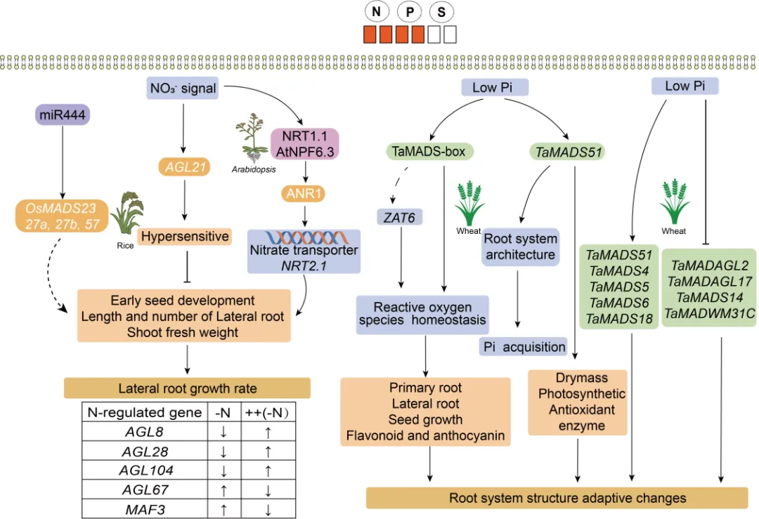 图4 植物面临养分缺乏时涉及MADS-box基因的调控动态