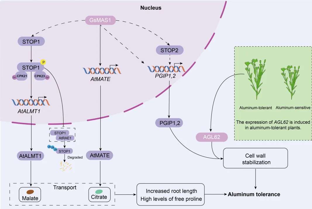 (4)响应营养和重金属胁迫:在氮、磷等营养元素缺乏时,MADS-box基因如拟南芥的ANR1、SOC1和水稻的多个OsMADS成员,通过调节根系构型来优化营养吸收(图4)。面对铝、镉等重金属毒害,大豆的GsMAS1通过激活铝外排和细胞壁稳定相关基因来增强铝耐受性,而一些MADS-box基因也被发现参与了植物对镉、镍等重金属的响应(图5)。