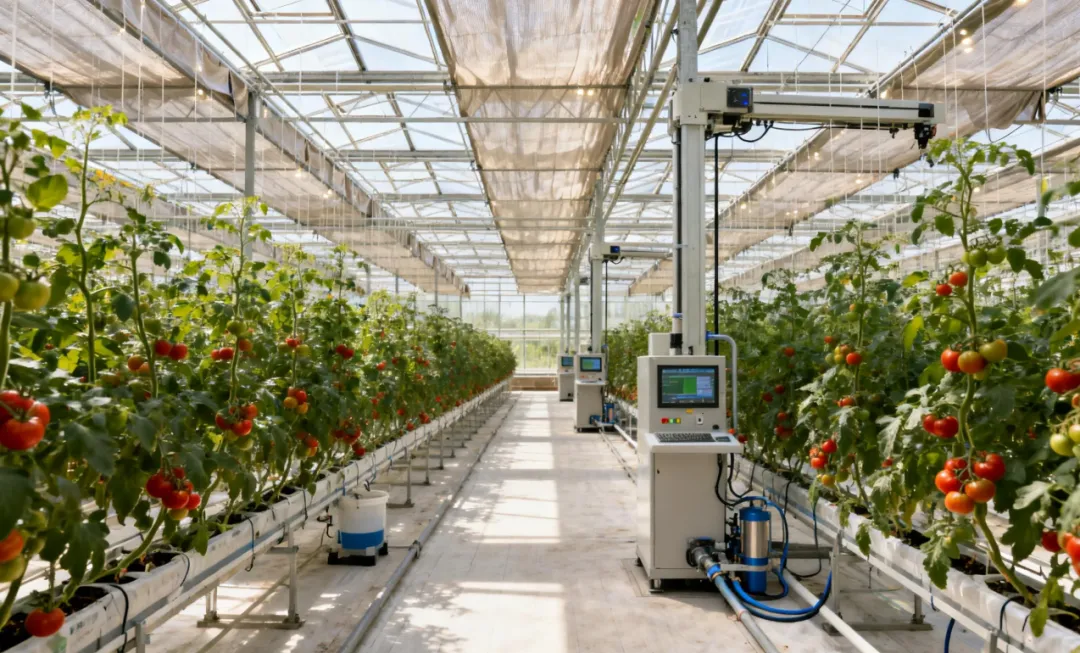 设施农业中的设施通常指的是智能温室。智能温室由计算机控制,可以自动开启天窗、遮阳系统、保温系统和喷灌系统等,为农作物生长提供最佳的环境条件。