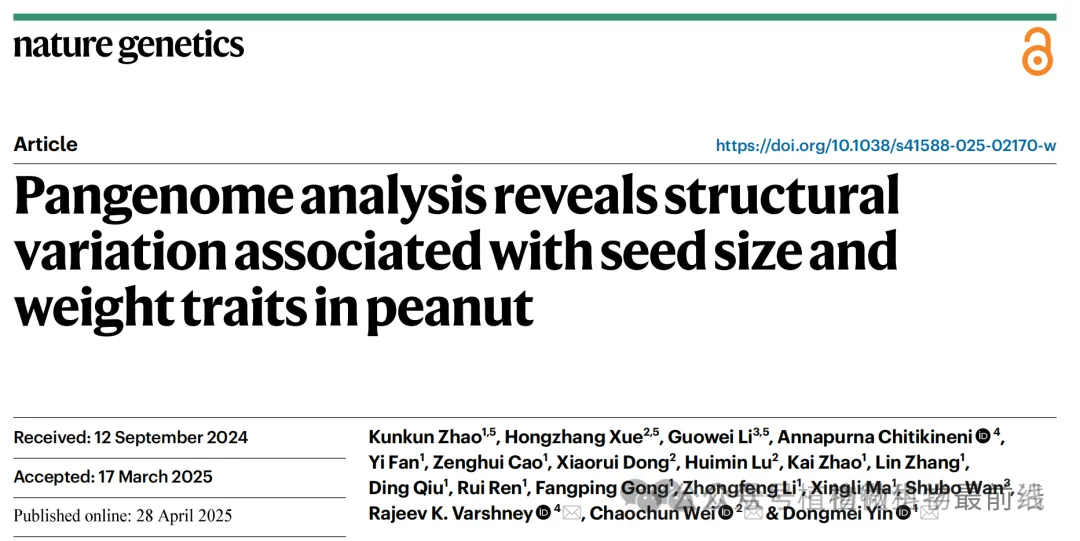 河南农业大学刚发《Nature Genetics》,再发顶刊(IF=11.8),填补空白!花生多组学大数据PeanutOmics平台助力分子育种研究