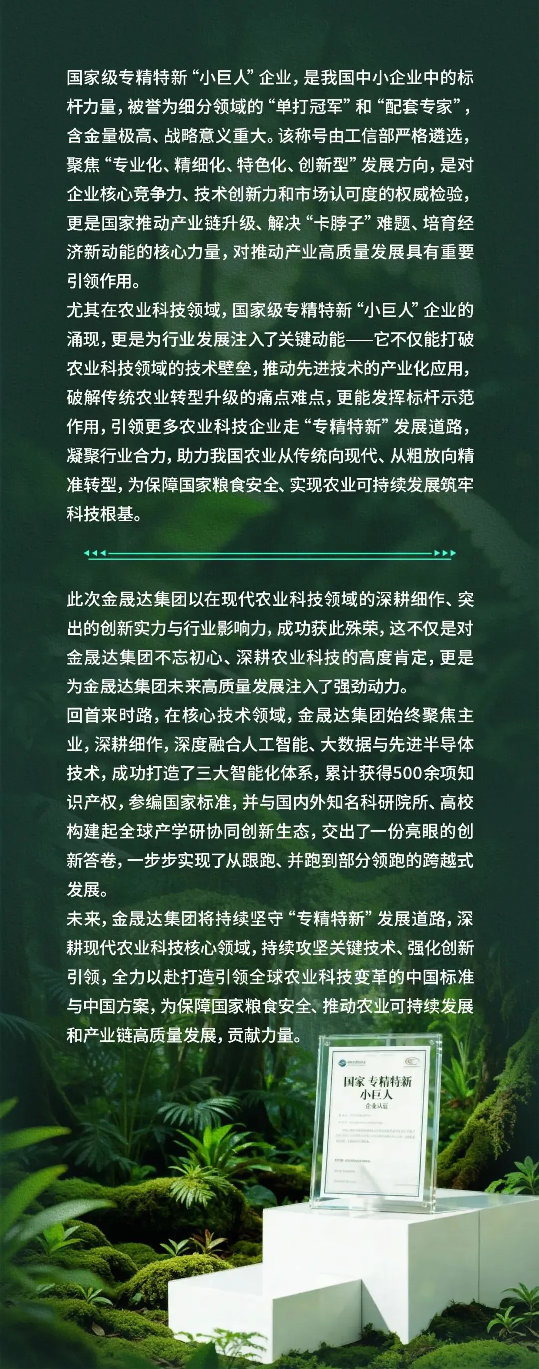 >金晟达获评国家级“小巨人”,农业科技再添新标杆