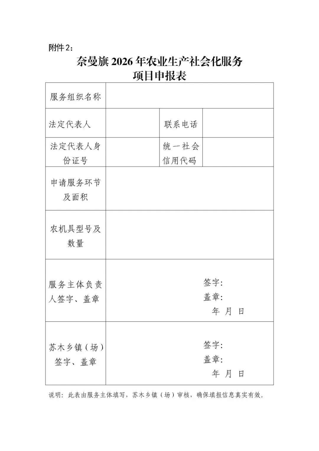 1.奈曼旗2026年农业生产社会化服务项目申报表