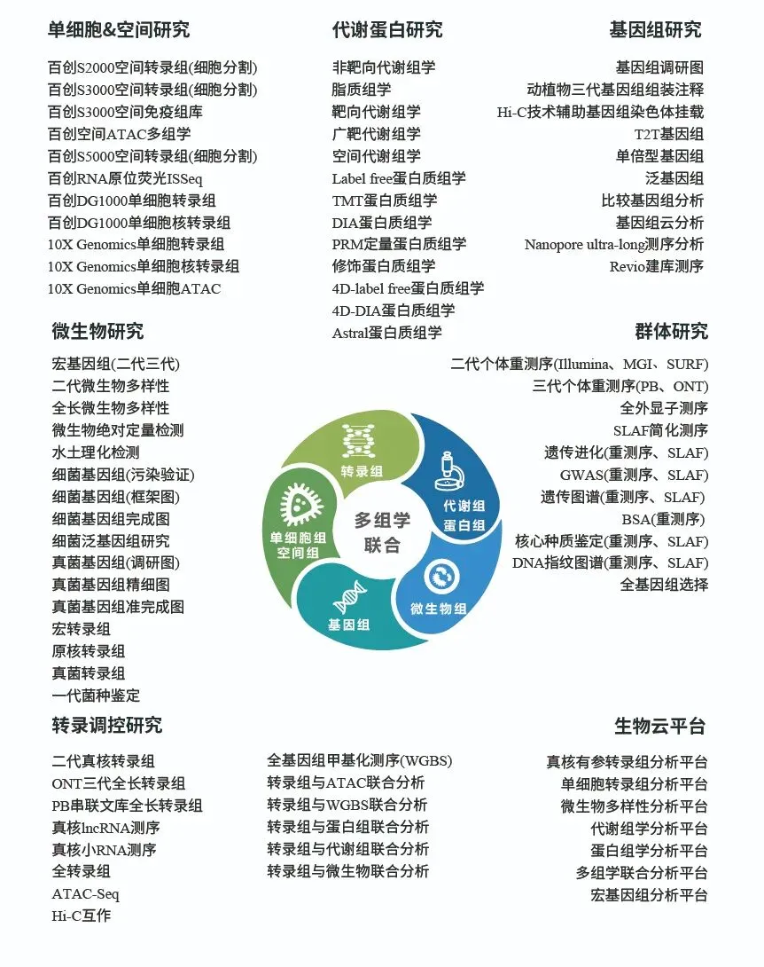 北京百迈客生物科技有限公司(简称:百迈客生物)成立于2009年,是一家提供基因多组学测序服务和单细胞组学&空间组学仪器设备的高新技术企业。业务主要包括科技服务、智能制造两大业务板块。全球化的业务布局,在中国、欧洲等地区拥有以博士和硕士为主体的研发及服务团队,先后在Cell、Nature、Science等国际期刊上发表文章数千篇,累计影响因子超万分。拥有MGI、GeneMind、 Illumina、 PacBio、Nanopore、AB SCIEX、Waters、BMKMANU、10X等二代测序、三代测序和质谱检测平台,自主创新的百灵实验室全自动生产线、BMKCloud多组学大数据智能交付平台及亚细胞级S系列空间组学产品,为全球科研单位、育种机构、医药公司等提供高品质基因多组学服务和产品。