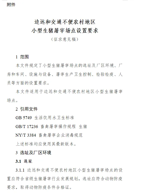 附件:边远和交通不便农村地区小型生猪屠宰场点设置要求(征求意见稿)