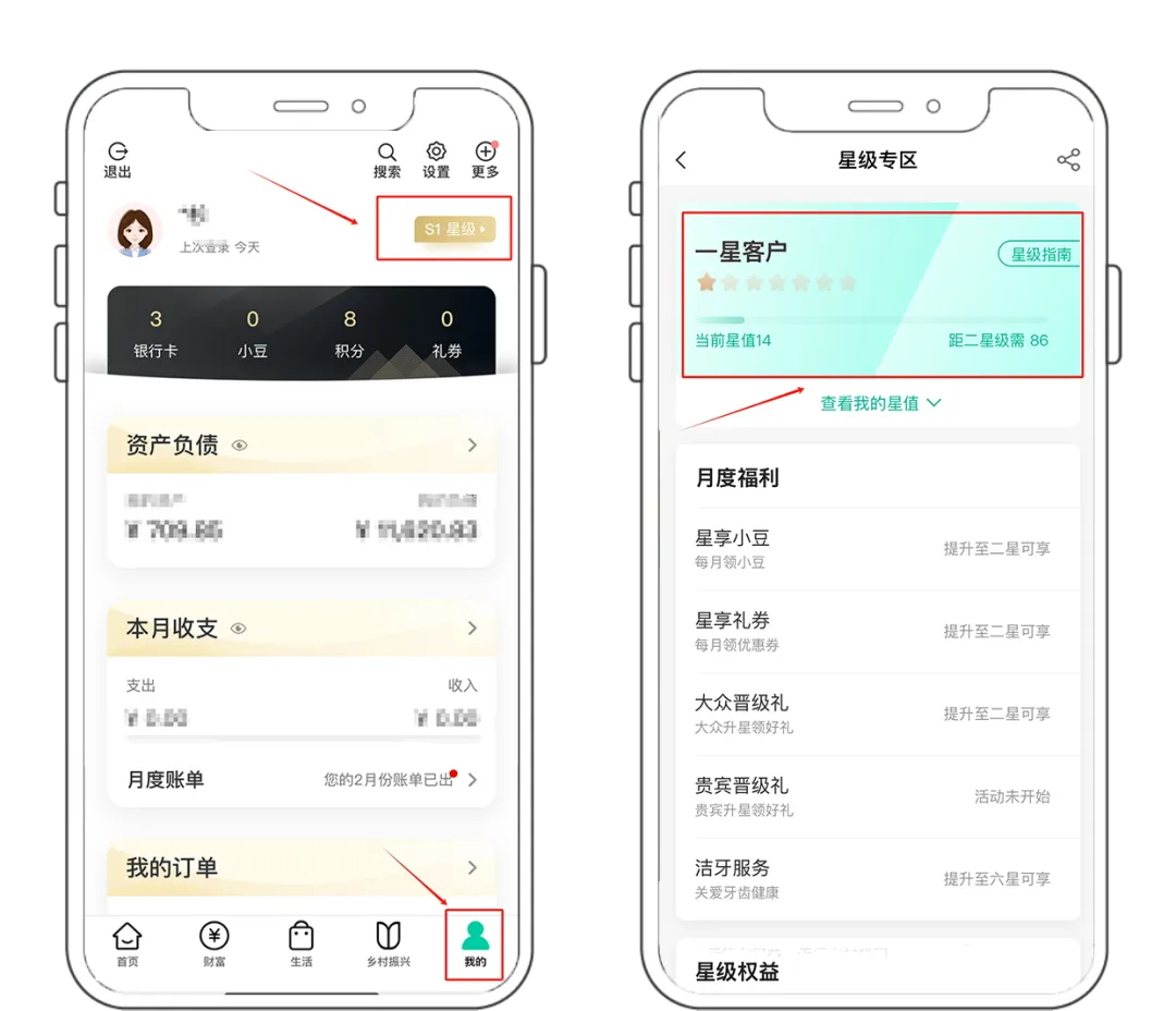 农行无感支付优惠,星级权益分级享受