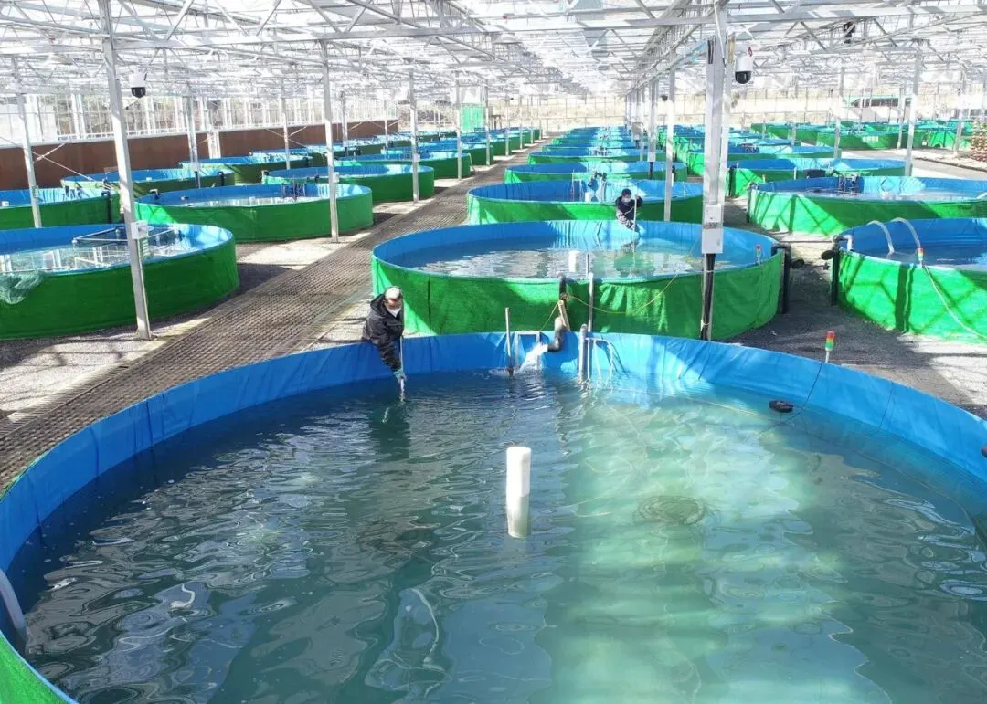 该项目采用先进的“陆基养鱼”模式,拥有208个直径6.4米的巨型养殖池,单个池养殖量可达五六千斤。其核心优势在于占地面积小、水资源利用效率高,并突破了季节对养殖周期的限制。