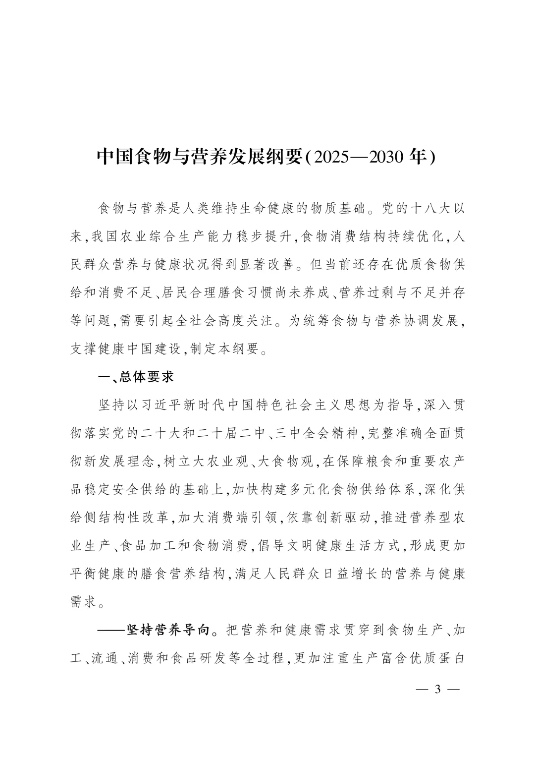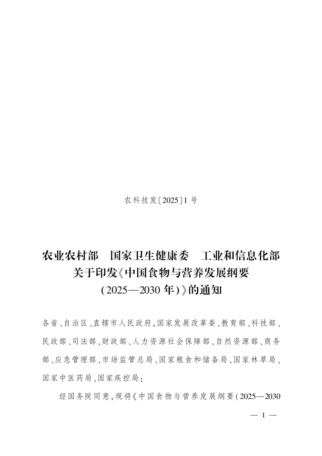 >农业农村部 国家卫生健康委 工业和信息化部关于印发《中国食物与营养发展纲要(2025—2030年)》的通知