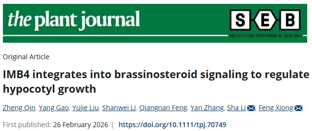 近日,山东农业大学李厦/熊峰课题组联合南开大学张彦课题组在国际期刊The Plant Journal上发表题为IMB4 integrates into brassinosteroid signaling to regulate hypocotyl growth的研究论文,揭示了核转运蛋白IMPORTIN BETA 4(IMB4)通过与BZR1/BES1互作调控其核内蛋白稳定性,从而介导拟南芥黑暗条件下下胚轴伸长的分子机制。