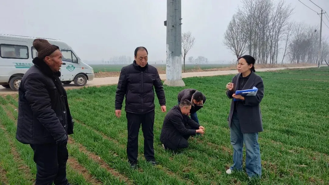 在田间监测的同时,农技人员化身“田间指导员”,为农民群众现场讲解小麦返青期至拔节期关键管理技术,围绕科学用药、分类施肥、化学除草、促弱转壮、清沟沥水等核心要点,手把手示范、面对面答疑,引导农户落实绿色防控、精准防控措施,避免盲目用药、重复施药,提升防控效果与生产效益。