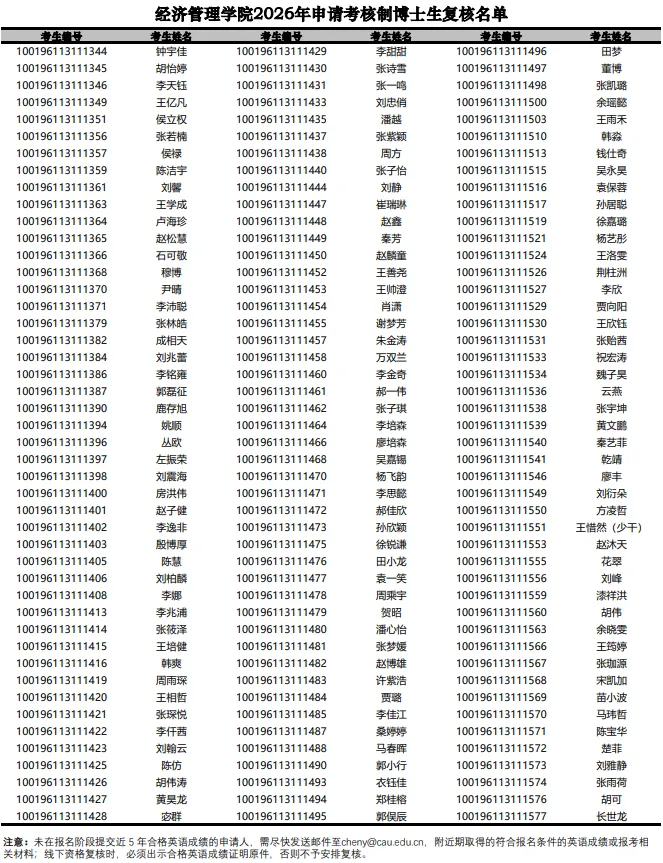 >中国农业大学经济管理学院2026年申请考核制博士生招生复核名单