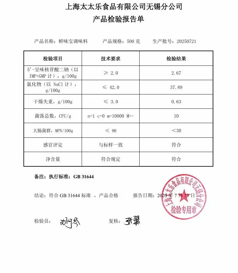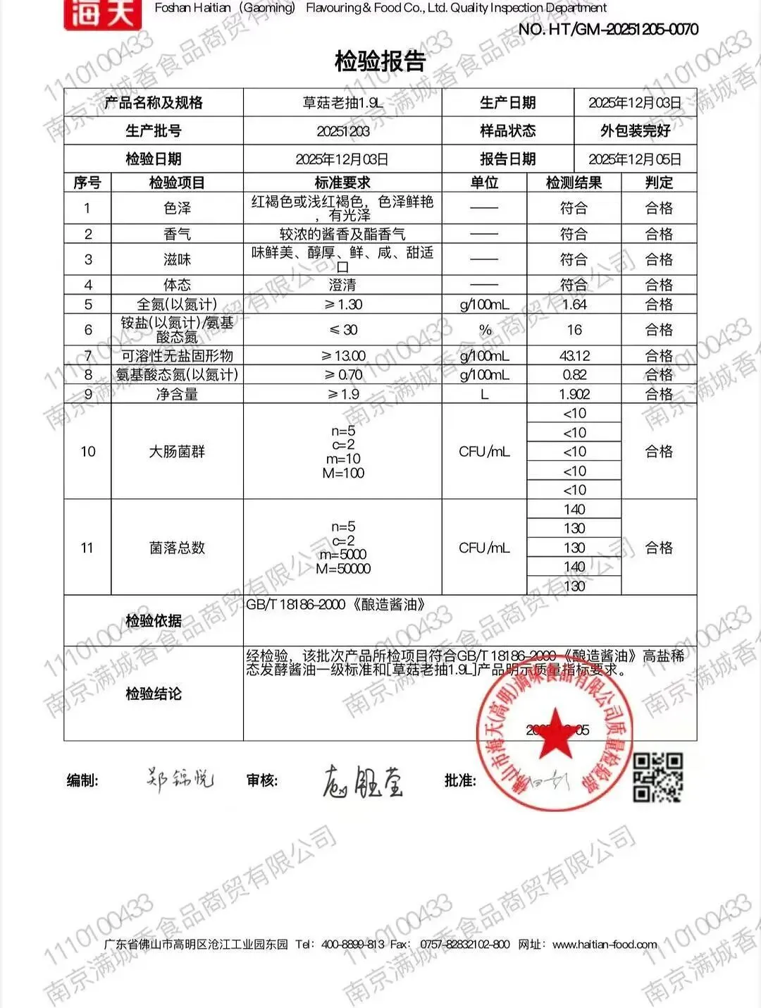调味品(海天、酱料、杂货、酒类、雀巢奶粉)检测报告