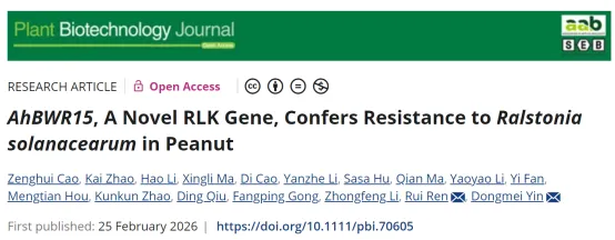 河南农业大学殷冬梅团队教授揭示花生抗青枯病关键基因AhBWR15及其分子调控机制