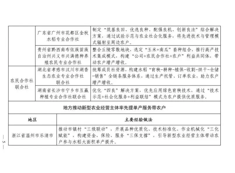 近年来,各地贯彻落实党中央、国务院决策部署,聚焦粮食稳产丰产,发动新型农业经营主体率先提单产服务带农户,围绕当地主导产业完善农业经营体系,涌现出了一批可复制、可推广的经验做法,现予以总结推介。