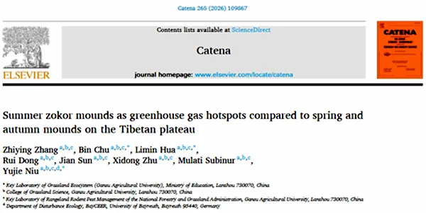 近日,甘肃农业大学草业学院楚彬副教授、花立民教授和柔性引进人才牛钰杰博士作为共同通讯作者在Catena期刊上发表题为“Summer zokor mounds as greenhouse gas hotspots compared to spring and autumn mounds on the Tibetan plateau”的文章。论文第一作者为甘肃农业大学草业学院博士研究生张志莹。