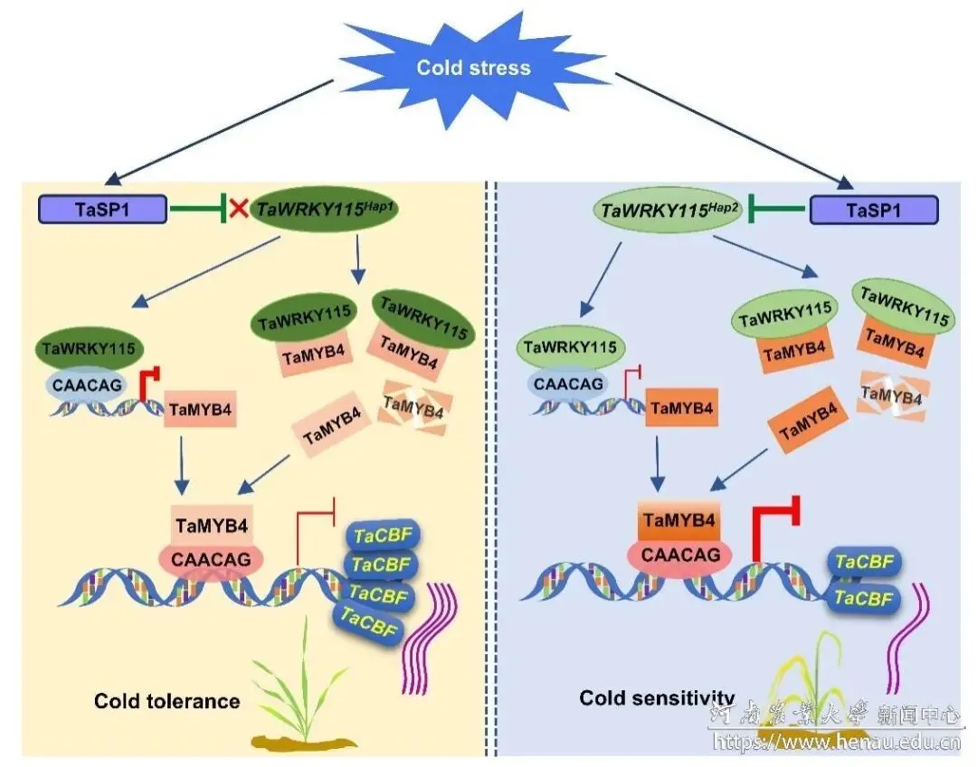 近日,河南农业大学陈锋教授课题组/宁波大学植物病毒研究所羊健研究员团队在《National Science Review》期刊上发表题为“TaWRKY115 enhances cold tolerance by weakening the expression of TaMYB4 on CBFs in common wheat”的研究论文。河南农业大学博士生刘金园为论文的第一作者,宁波大学博士后姜瑶瑶、河南农业大学副教授赵磊为共同第一作者;河南农业大学副教授赵磊、宁波大学羊健研究员、河南农业大学陈锋教授为本文通讯作者。