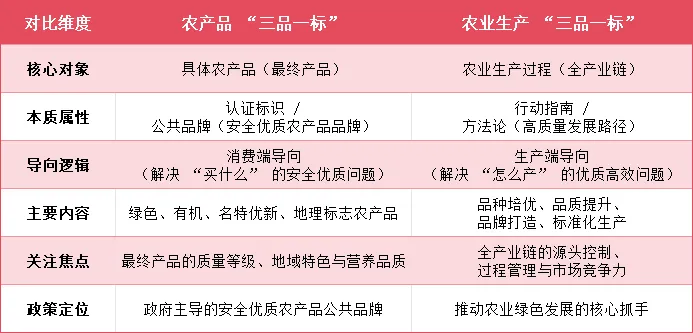 - 共同服务于高质量发展目标:政策顶层设计中,两者被视为一体两面 —— 生产端的 “三品一标” 是实现路径,产品端的 “三品一标” 是核心目标,共同推动农业绿色化、品牌化转型。