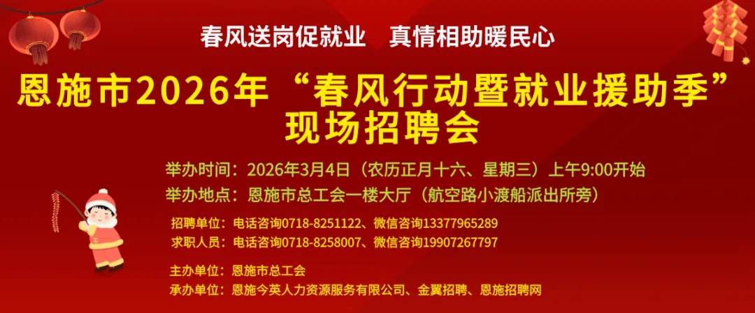 【招聘会】恩施市总工会2026年“春风行动暨就业援助季”现场招聘会!