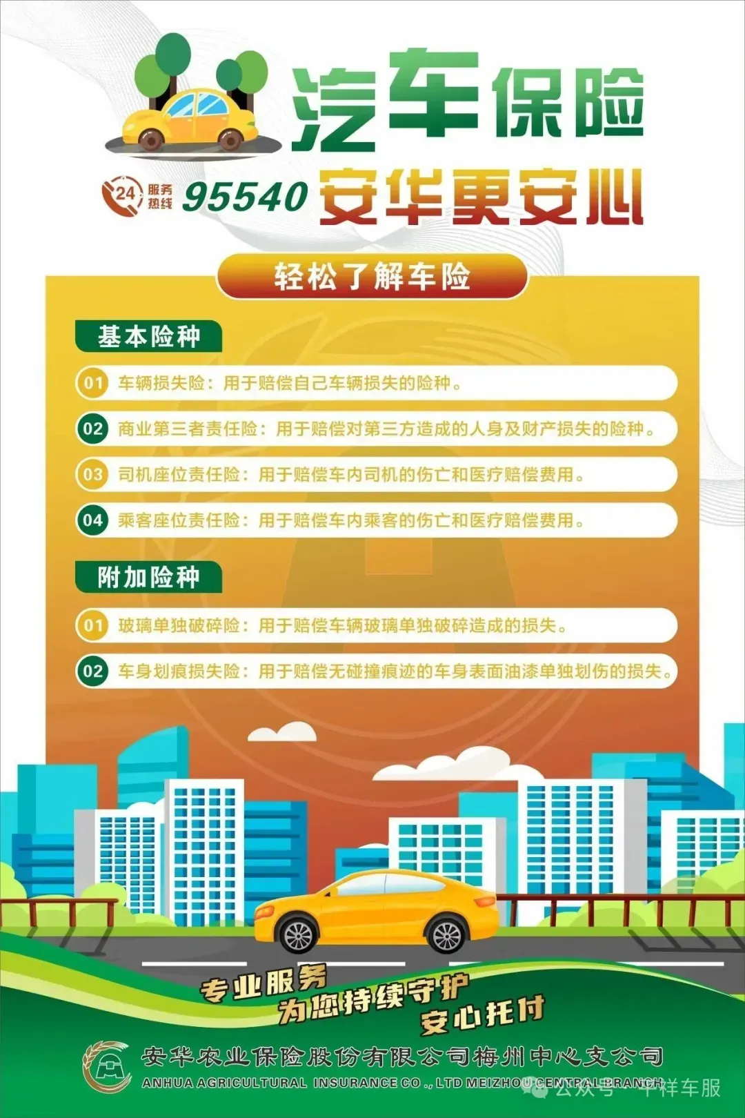 安华农业保险股份有限公司梅州中心支公司,成立于2021年6月24日,隶属于安华农业保险股份有限公司。业务范围涵盖农业保险;车辆保险;财产保险;财产损失保险;责任保险;法定责任保险;信用保险和保证保险:短期健康保险和意外伤害保险:其他涉及农村、农民的财产保险业务;上述业务的再保险业务;国家法律、法规允许的保险资金运用业务,以及监管部门批准的其他业务。