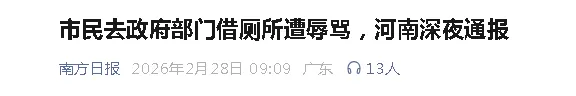 河南省内乡县居民王先生近日在社交平台发布视频称,自己去政府部门上厕所遭工作人员“辱骂”。