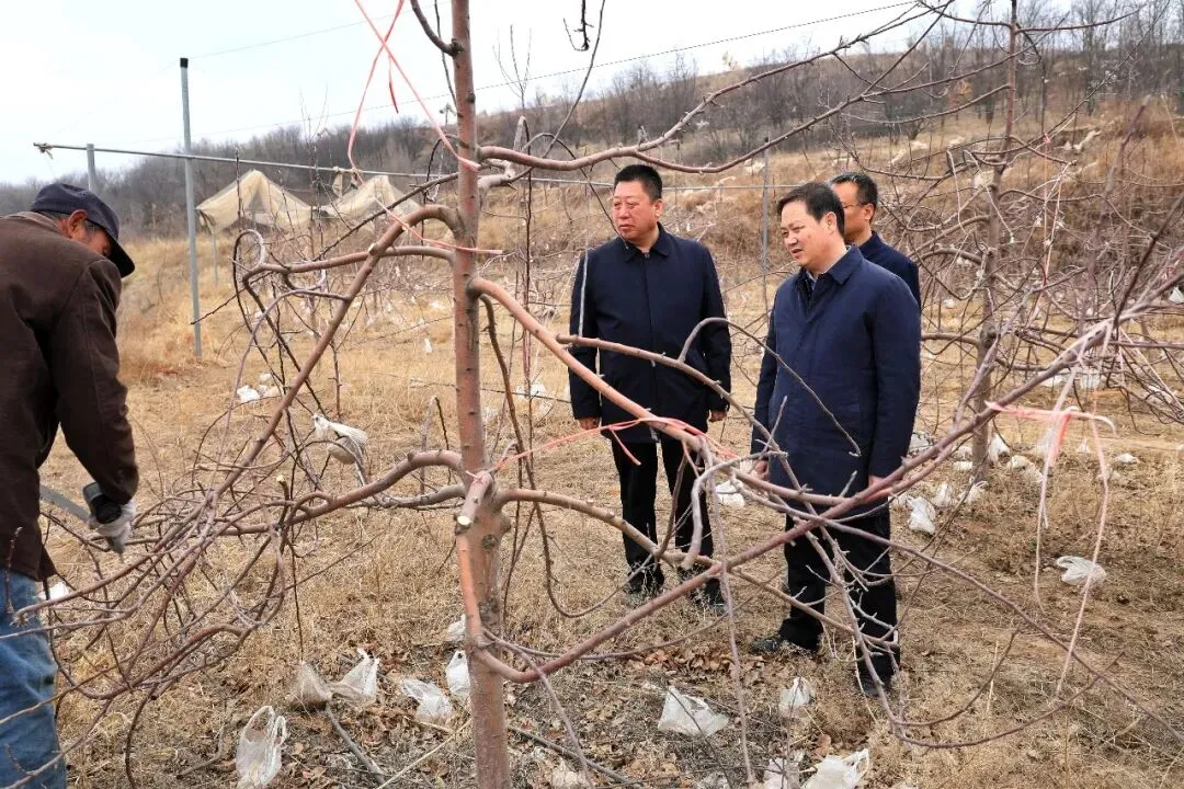 在张坪村榆树沟和吴仓堡村川畔苹果示范园,贺毅与镇村干部和果农现场交流,详细了解春季果园修剪、果农实用技术培训等工作进展情况。他强调,当前正值春季果树管理黄金期,果业部门干部要全员下沉一线,深入田间地头,手把手教学、面对面指导,实打实地提高果农专业技能。镇街要及时组建专业队伍,逐村逐户指导果农修剪果树,提升果业精细化管护能力和水平,做到剪一棵、成一棵。要加强春季果园管理考核,倒逼包园领导履职尽责、果农精心管护,力促苹果业提质增效。