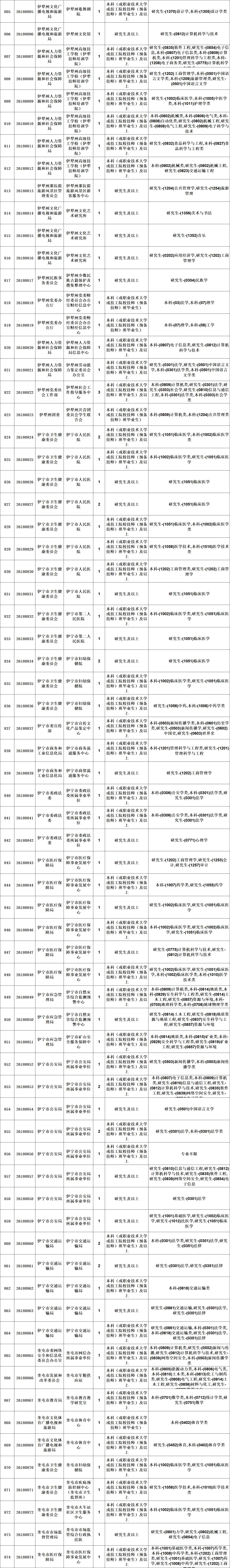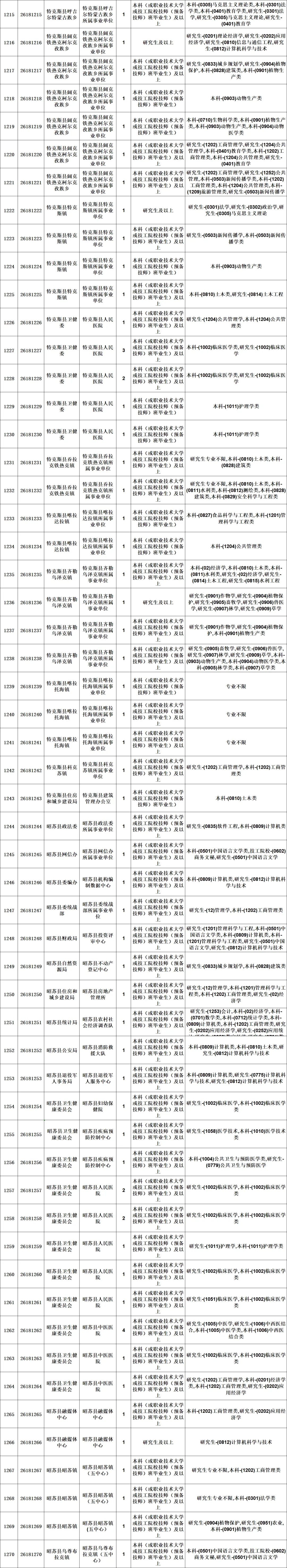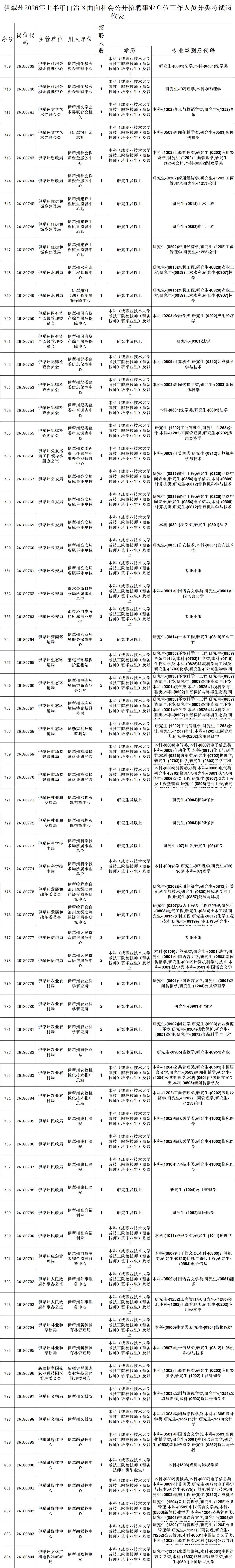 新疆维吾尔自治区2026年上半年面向社会公开招聘事业单位工作人员分类考试公告《事业单位人事管理条例》(国务院令第652号)、《自治区事业单位面向社会公开招聘工作人员办法》(新人社发〔2013〕141号)等有关规定,自治区人力资源和社会保障厅将组织实施2026年上半年面向社会公开招聘事业单位工作人员分类考试笔试工作,本次公开招聘共计3719个岗位4474人。现将有关事项公告如下:
