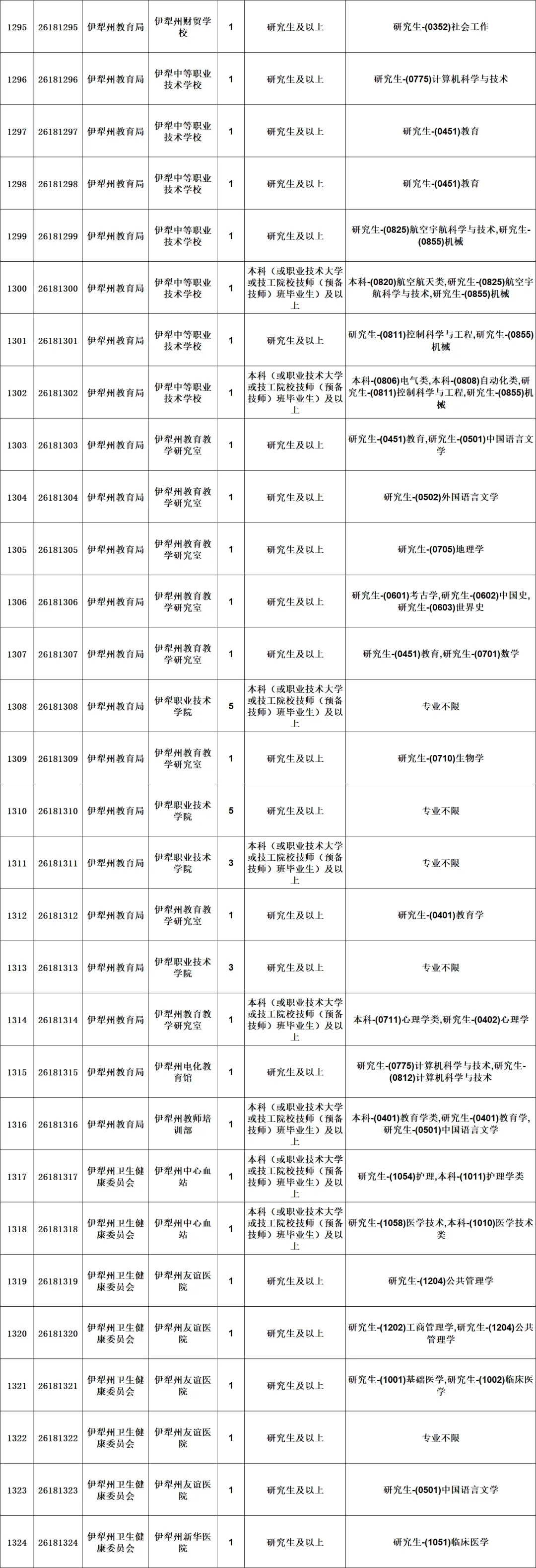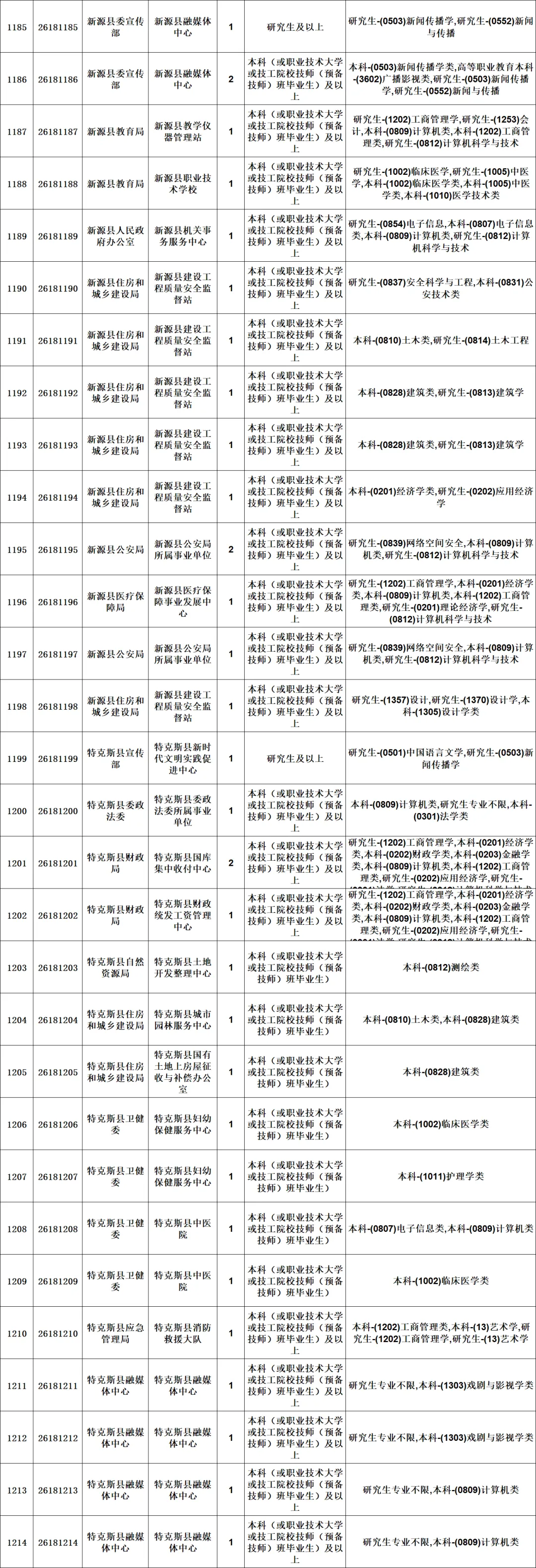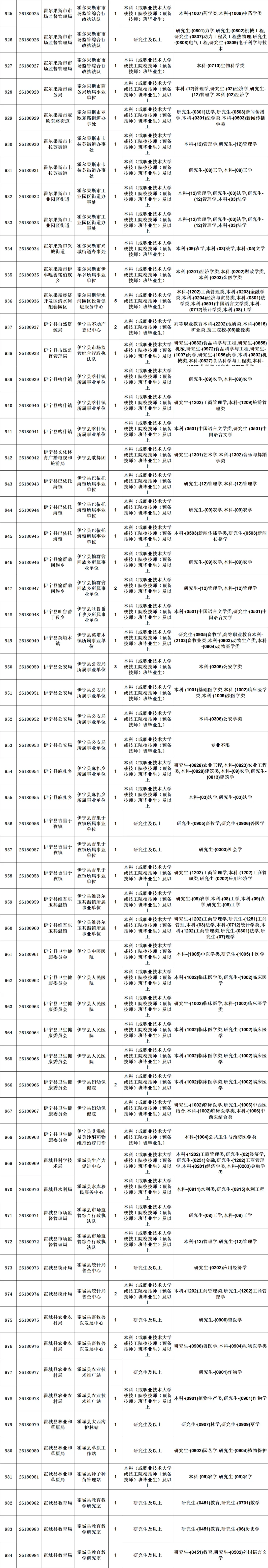 新疆维吾尔自治区2026年上半年面向社会公开招聘事业单位工作人员分类考试公告《事业单位人事管理条例》(国务院令第652号)、《自治区事业单位面向社会公开招聘工作人员办法》(新人社发〔2013〕141号)等有关规定,自治区人力资源和社会保障厅将组织实施2026年上半年面向社会公开招聘事业单位工作人员分类考试笔试工作,本次公开招聘共计3719个岗位4474人。现将有关事项公告如下:
