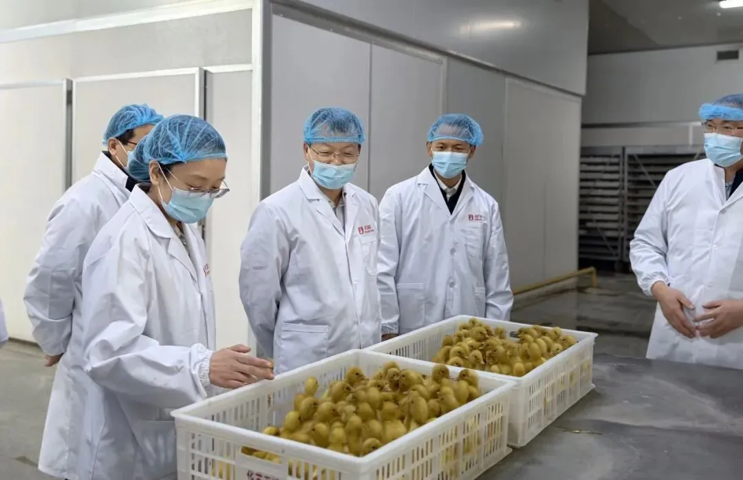 调研组先后深入华英种鸭养殖孵化场与现代化屠宰加工厂进行实地调研,详细了解华英全产业链生产情况,观摩了商品鸭苗智能化孵化过程、商品鸭宰杀的智能化生产流程。参观结束,在公司会议室进行了座谈交流。