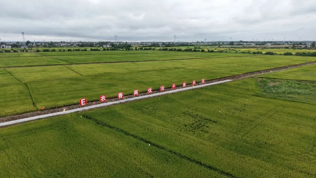 八宝镇的长拉优质食味香稻新品种“E农香两优1300”千亩飞播高产高效示范田里,金色稻浪翻滚,这是纽莱福农业公司从省农科院、市农科院引进的优质稻品种,也是全省农业科技专家大院2025年度工作考核暨成果转化现场会的核心观摩区。