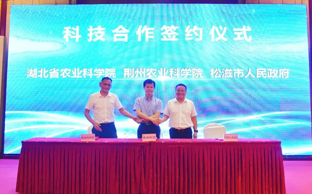 会议中,省农科院、荆州农科院和松滋市人民政府签订科技合作共建协议,农技专家还进行了多项科技成果推介。