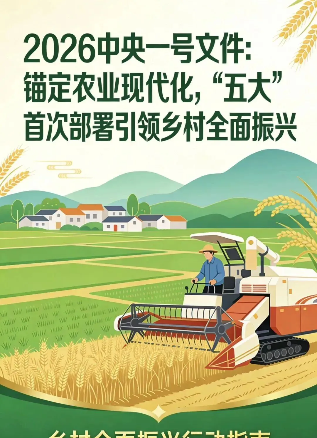 这次大文件,五项新部署不是单独的,都围绕核心现代化任务,既解决当下乡村的短板,又布局未来产业方向,全面去统筹,粮食要安全农民要增收,乡村要建设这些都包括,文件画蓝图,中国农业是个大产业,农村生活基本现代化,农民更富裕,生活更美好,这是好愿景。
