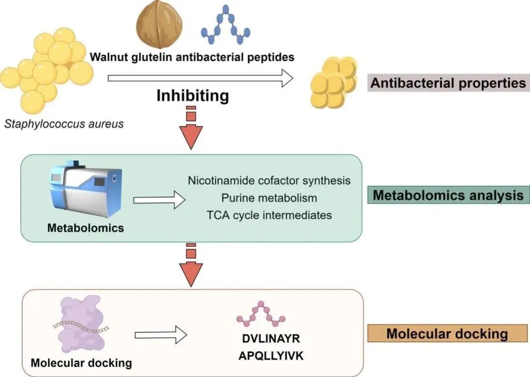 核桃谷蛋白抗菌肽通过代谢途径靶向金黄色葡萄球菌及新型抗菌肽的鉴定